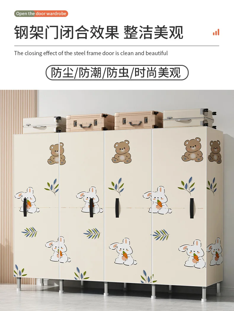Large Capacity Wardrobe Closet Steel Pipe Wardrobe Organizer Bedroom Furniture Clothes Storage Wardrobe Household Closet