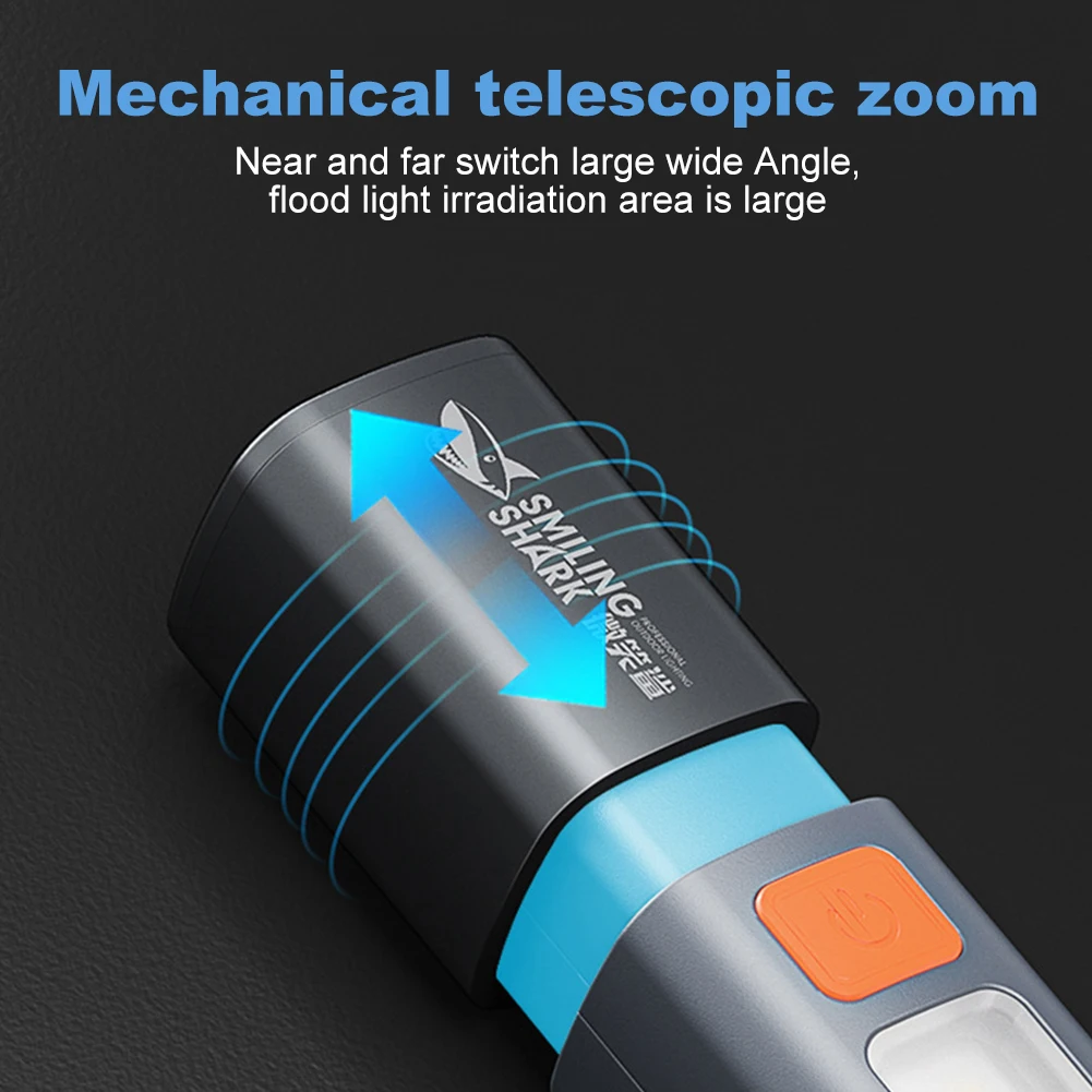 1.Adjustable Zoom Focus: Experience tailored illumination with the LED camping flashlight’s telescopic zoom feature, allowing you to modify the intensity and range of light from a focused beam to a broad glow, catering to your specific needs whether you’re navigating through dark trails or setting up camp.