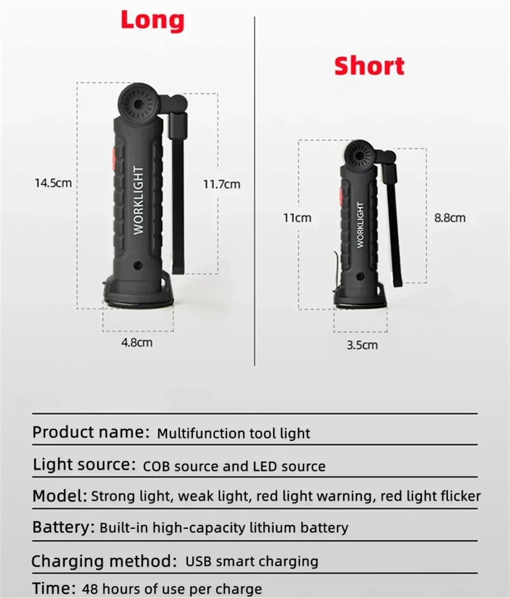 【Waterproof and Widely Used】Water-resistant, ensure the emergency light works fine on rainy or snow days. the COB work light is perfect for car repairing, emergency, camping, traveling, hiking, Fishing, CNC lathes, maintenance, workshop, garage, power outages, home lighting, work at night and working under the hood. (BUT DO NOT PUT IN WATER)
