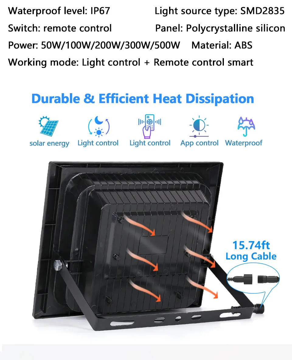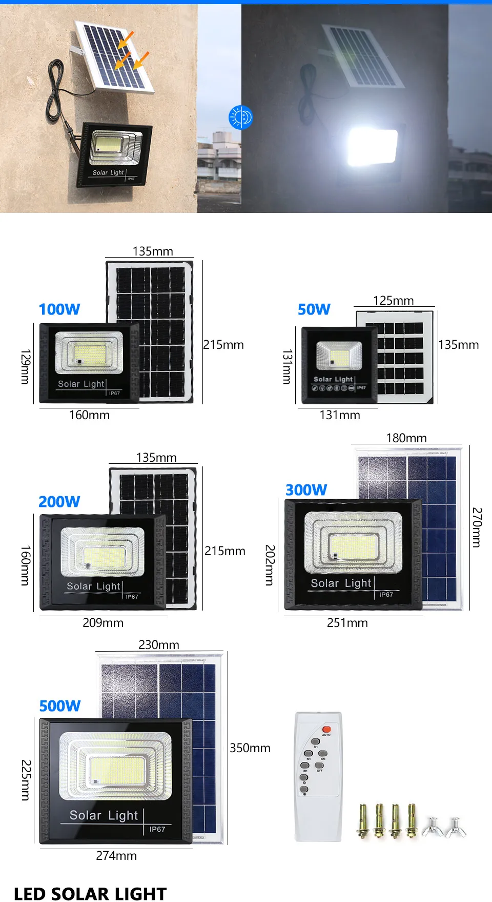 LED Solar Light Flood Lights Outdoor Solar Reflector Spotlights 50w 100w 200w 300w 500w With Remote Control For Garden Street