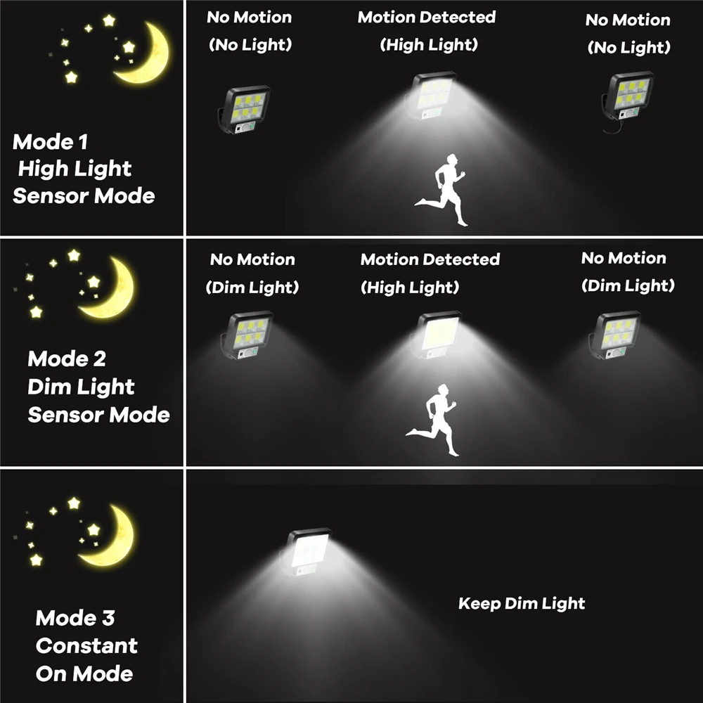 ●Turn on the switch when it is not bright during the day, and only turn on the switch in the dark, when the sensor detects a human body, it can get high brightness light.