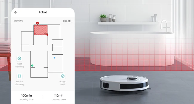 You can use the Lefant app to prevent the Lefant M1 robot vacuum cleaner from crossing virtual restricted areas/virtual walls, allowing your child, pet or family to rest undisturbed.