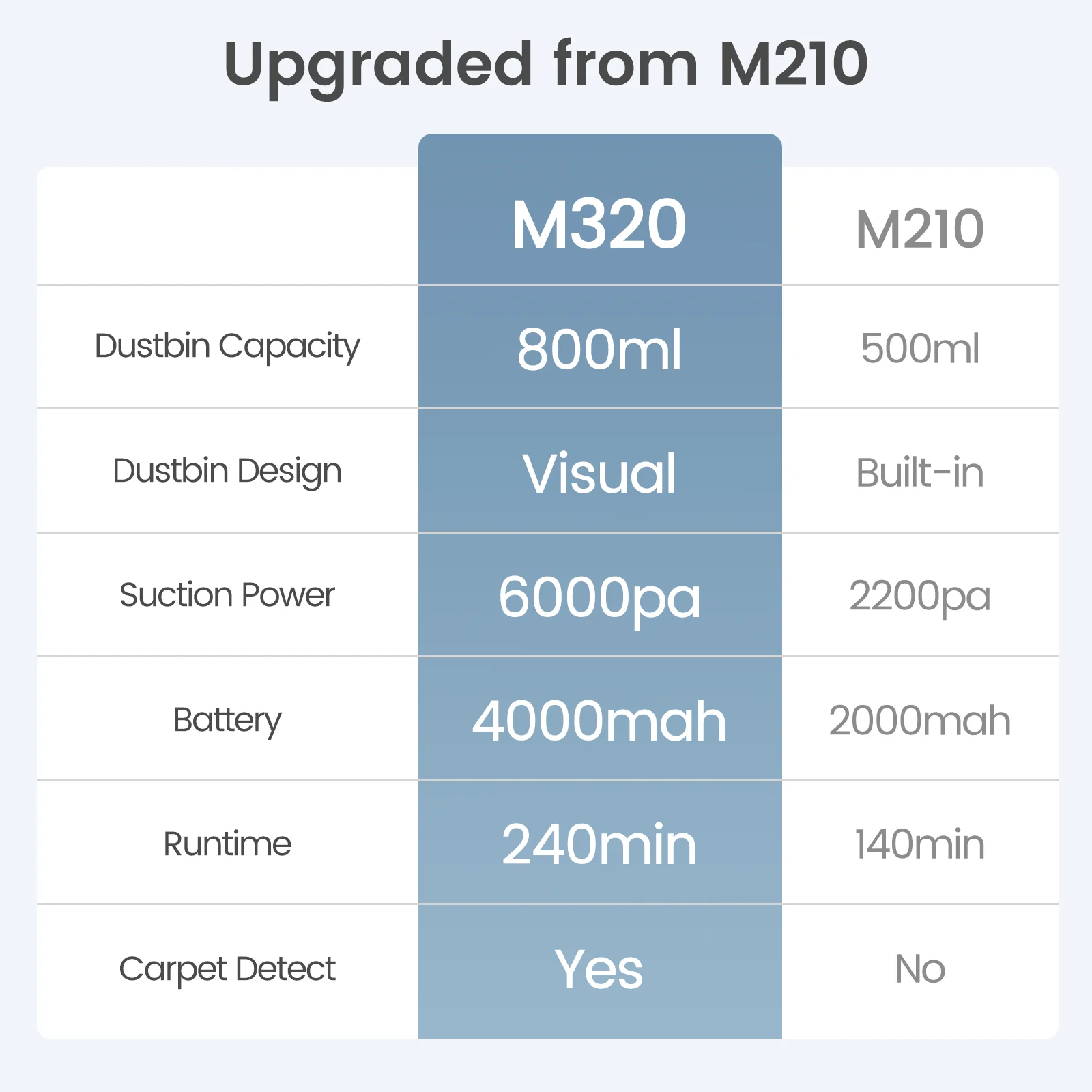 - Carpet Boost Mode: Yes, Intelligent Identification of Carpets