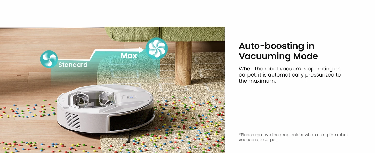 • Carpet Boost Mode: Yes, Intelligent Identification of Carpets