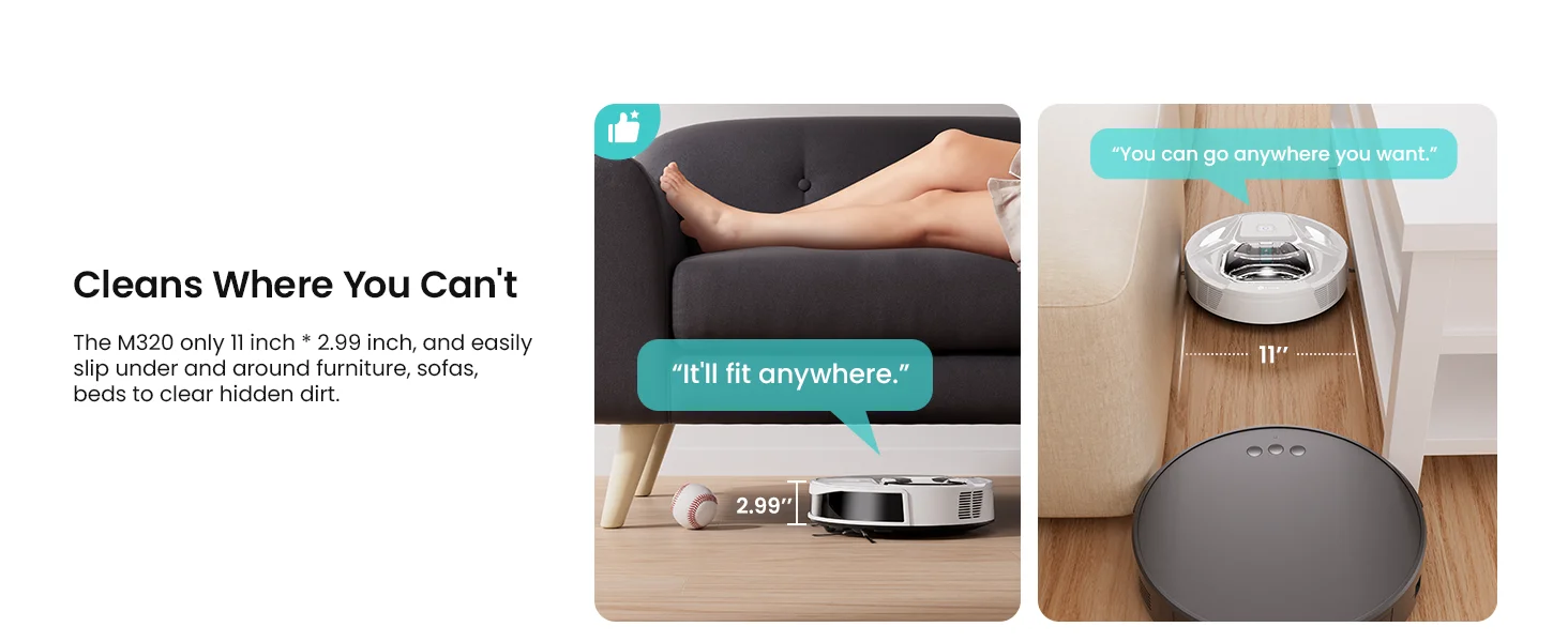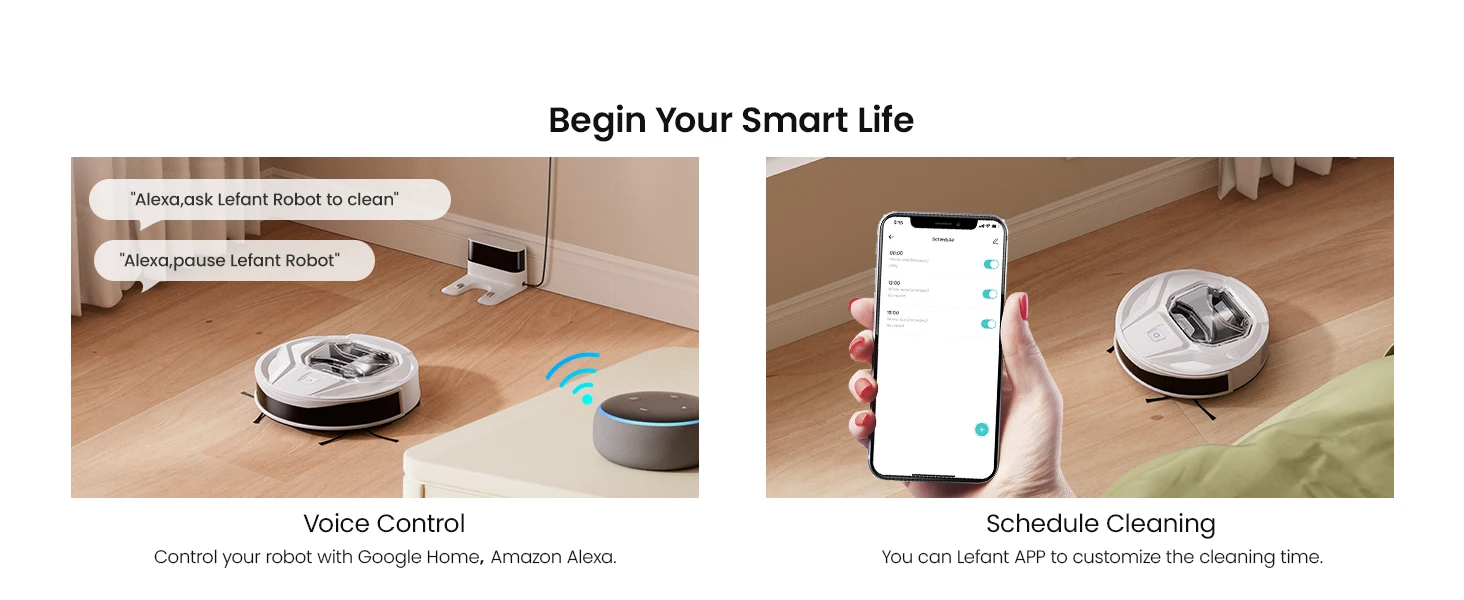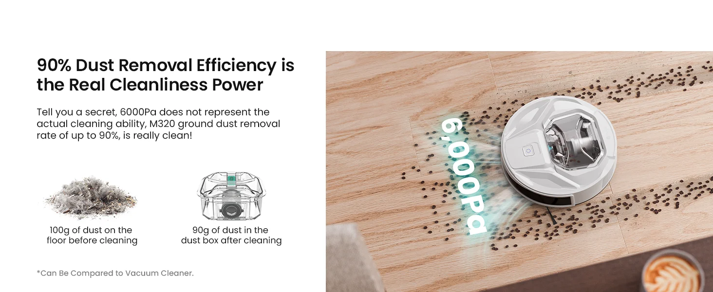 Lefant M320 Robot Vacuum Cleaner with Mop, 6000Pa Powerful Suction, Visible Dustbin, Carpet Detection, Alexa Voice Control