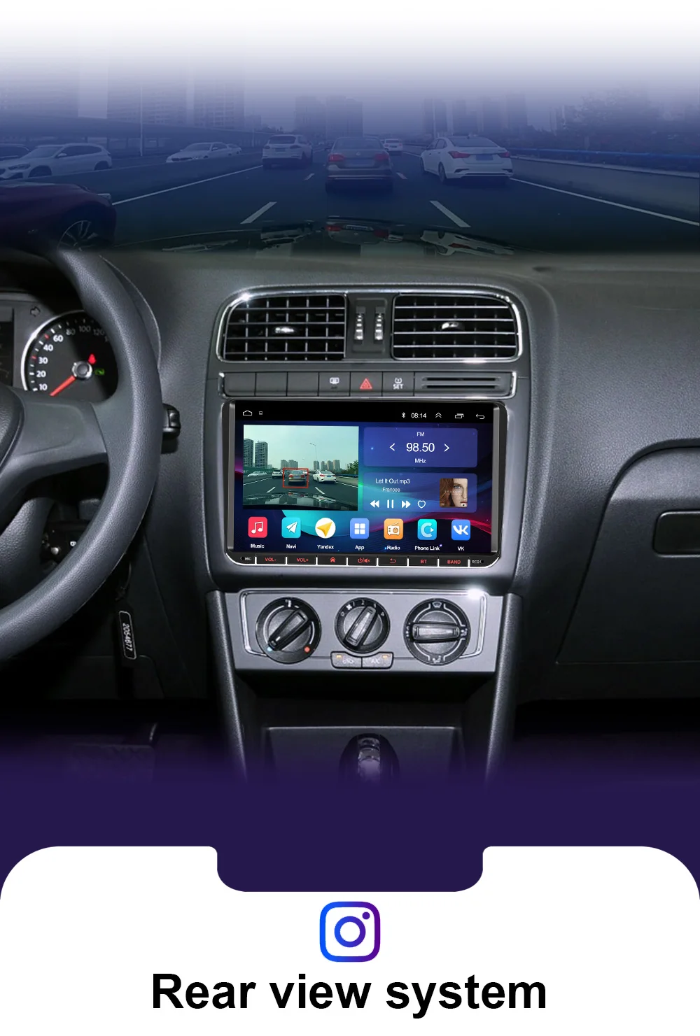 When the car is reversed, this Car Radio will automatically switch to the backup camera image view with the parking line.