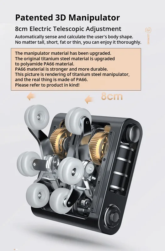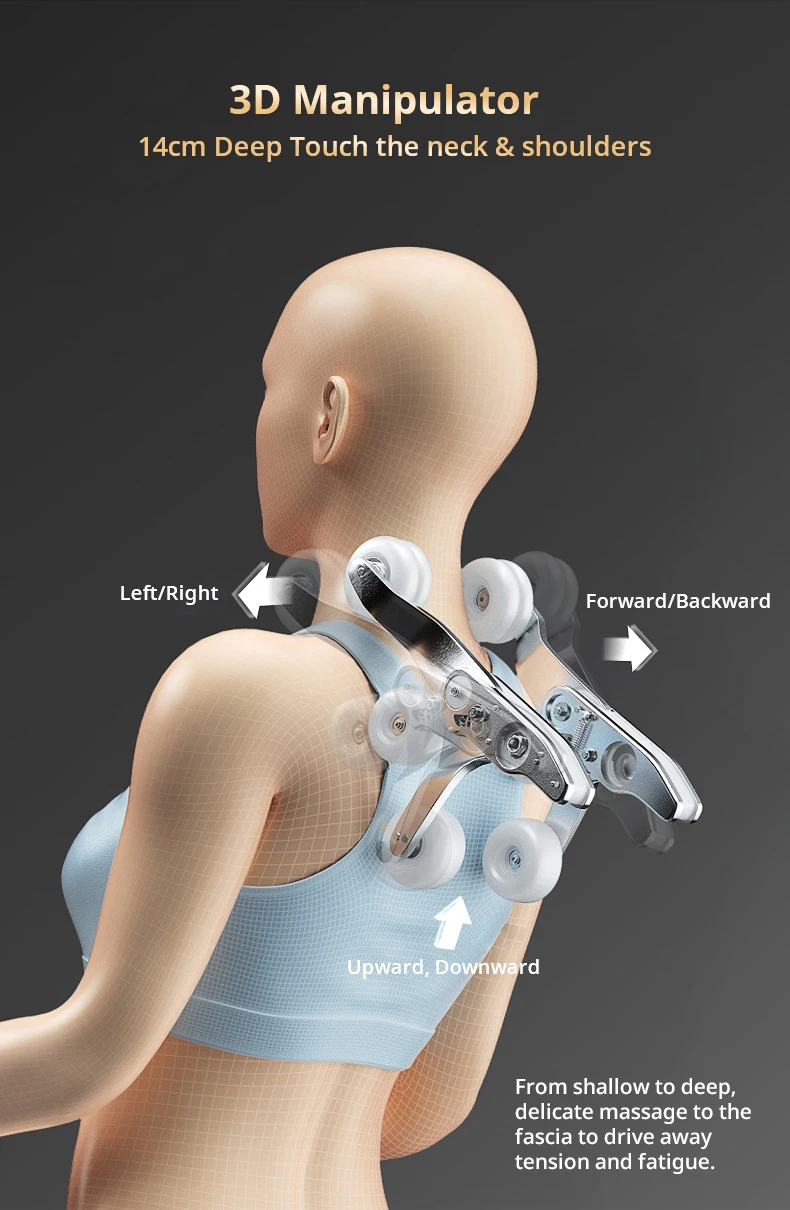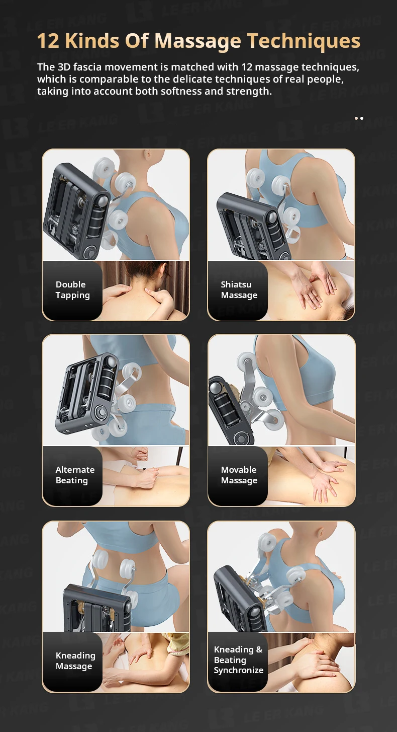The 3D fascia movement is matched with 12 massage techniques, which is comparable to the delicate techniques of real people, taking into account both softness and strength.