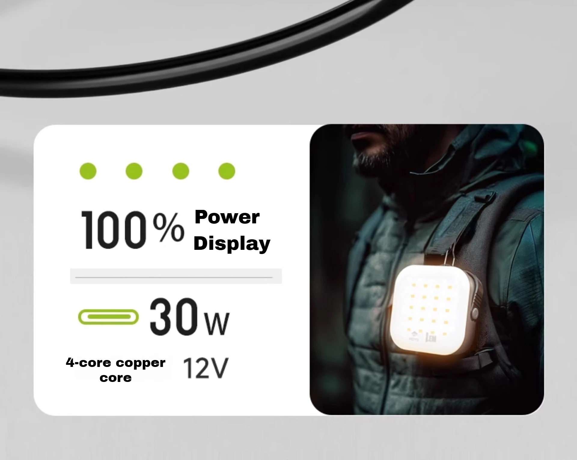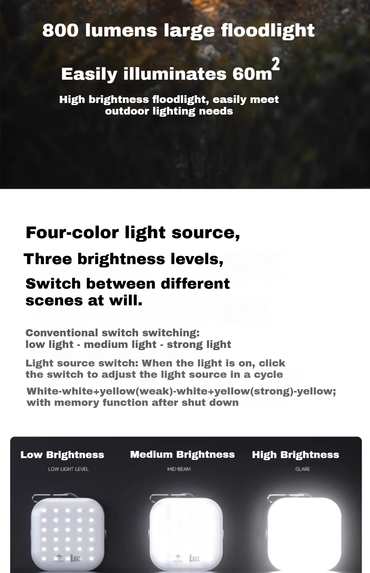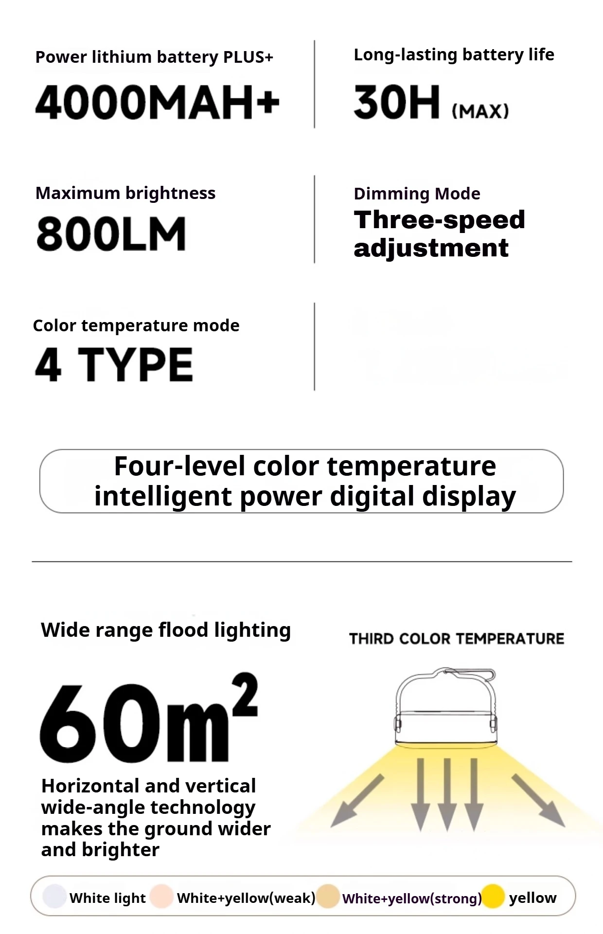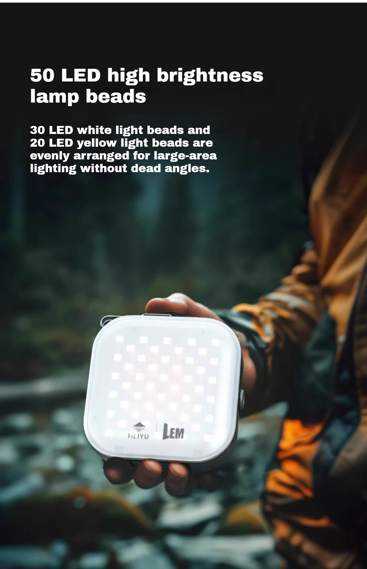 • Powerful Performance:Equipped with a 4000mAh power lithium battery, it offers a max 30 – hour long – lasting runtime. Boasting 50 LED beads (30 white, 20 yellow) and 800LM brightness, it can illuminate up to 60㎡, covering large areas without dead angles.