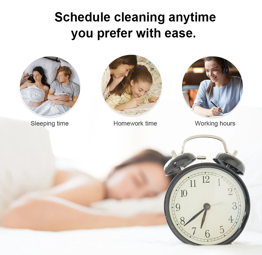 7.APP remote control and visual cleaning, you can schedule appointments on the APP, or adjust suction power, connect the robot to Alexa and Google assistant , etc.