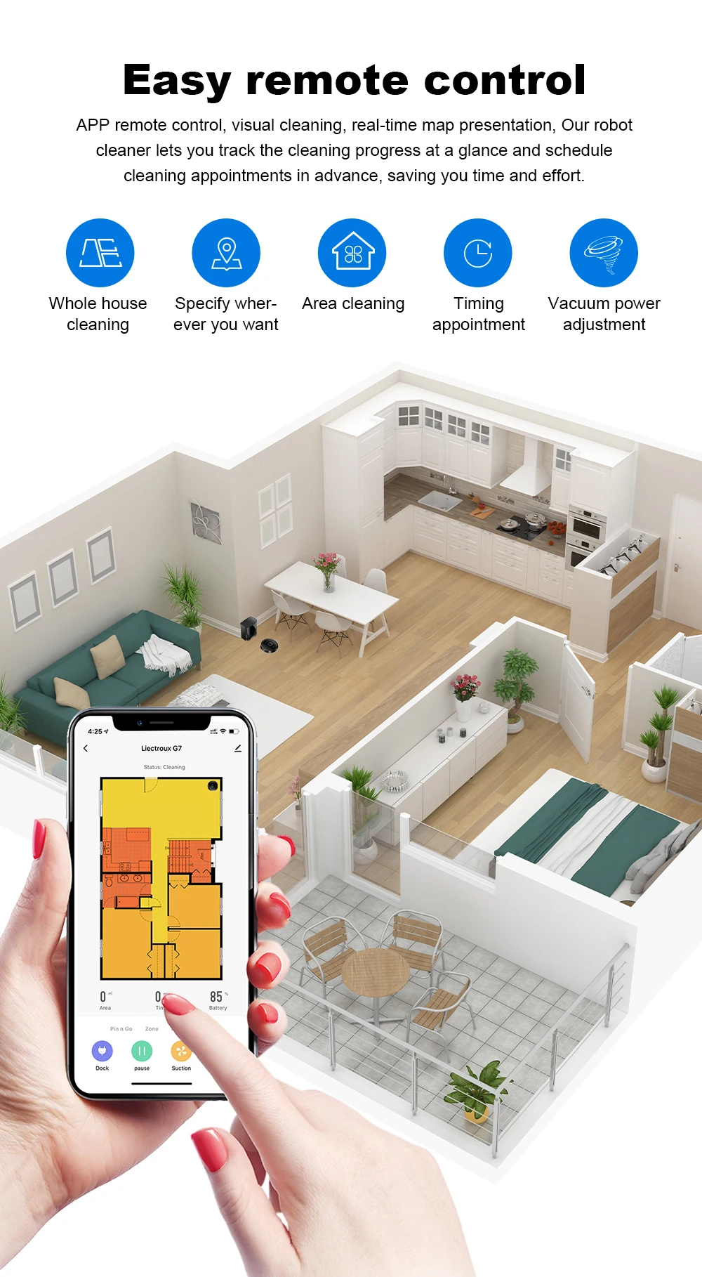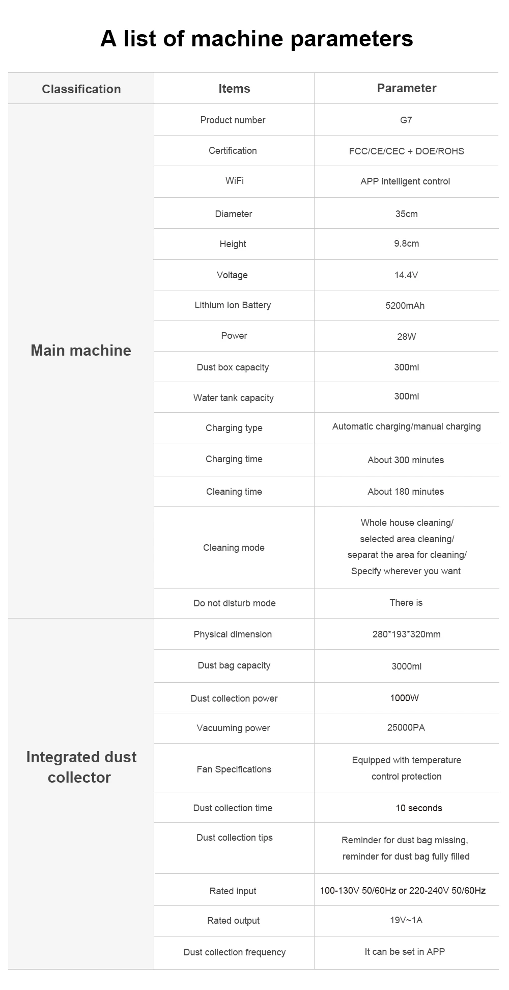 8.The G7 sweeper can save up to 5 maps, which saves time and electricity.ap Upload & Storage on APP.