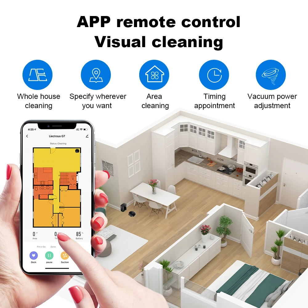7.APP remote control and visual cleaning, you can schedule appointments on the APP, or adjust suction power, connect the robot to Alexa and Google assistant , etc.