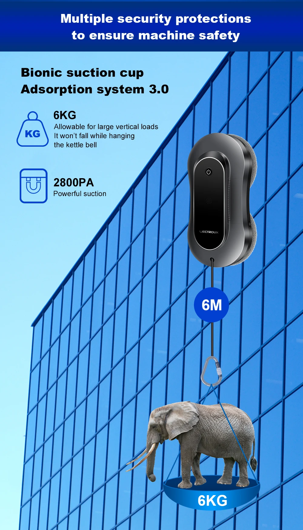 2500-3500 PA strong suction;. Firmly suck the window,more stable and safer.