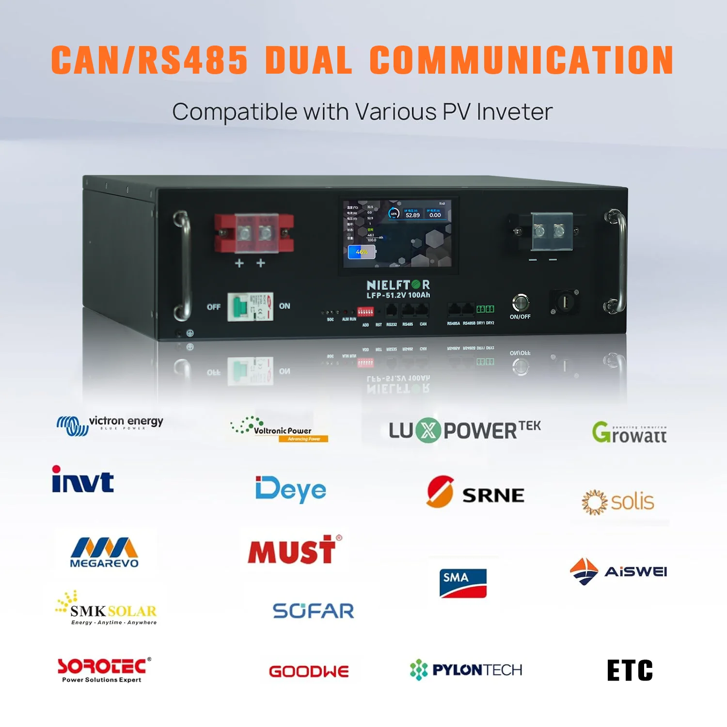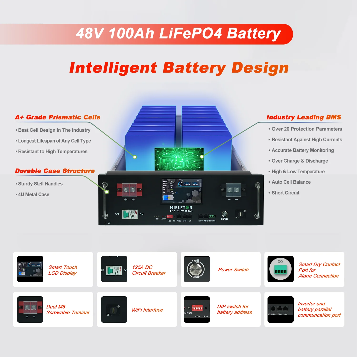 LiFePO4 Battery 48V 100Ah 5KWh 51.2V 100Ah 120Ah 200Ah 300Ah 400Ah 600Ah Lithium Battery Grade A Cells 6000+ Cycle PL EU Stock