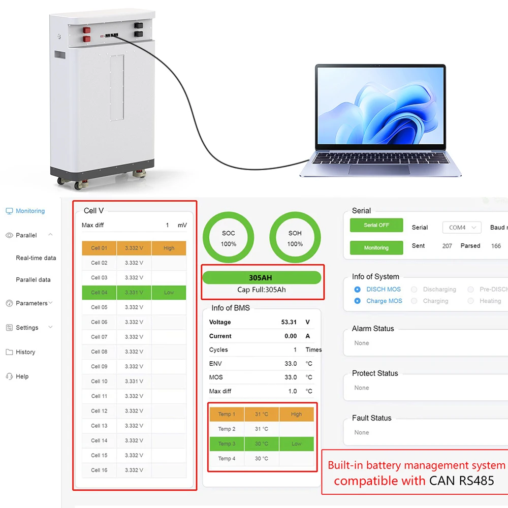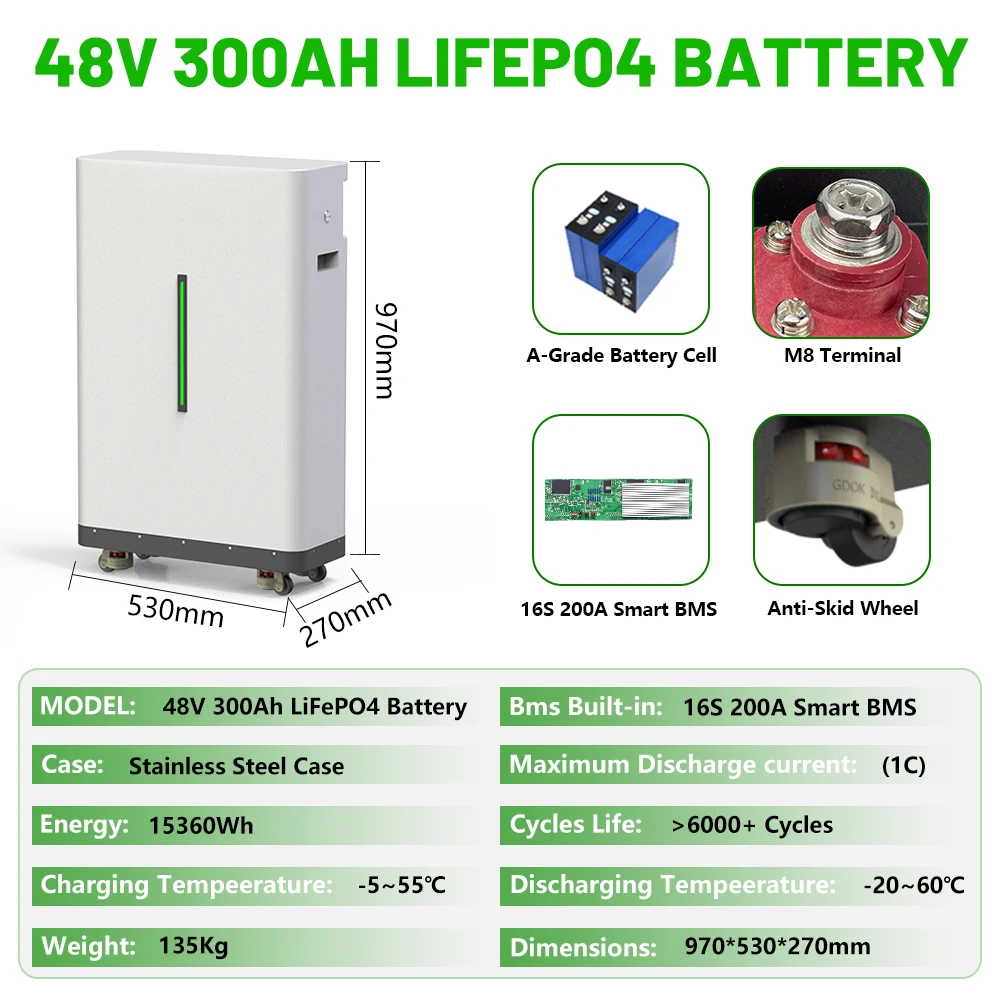 - Model Number: 51.2V 300Ah LiFePO4 Battery