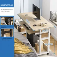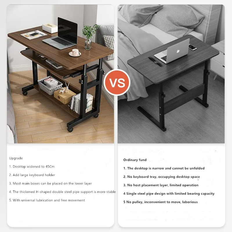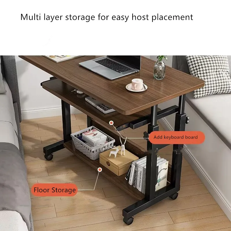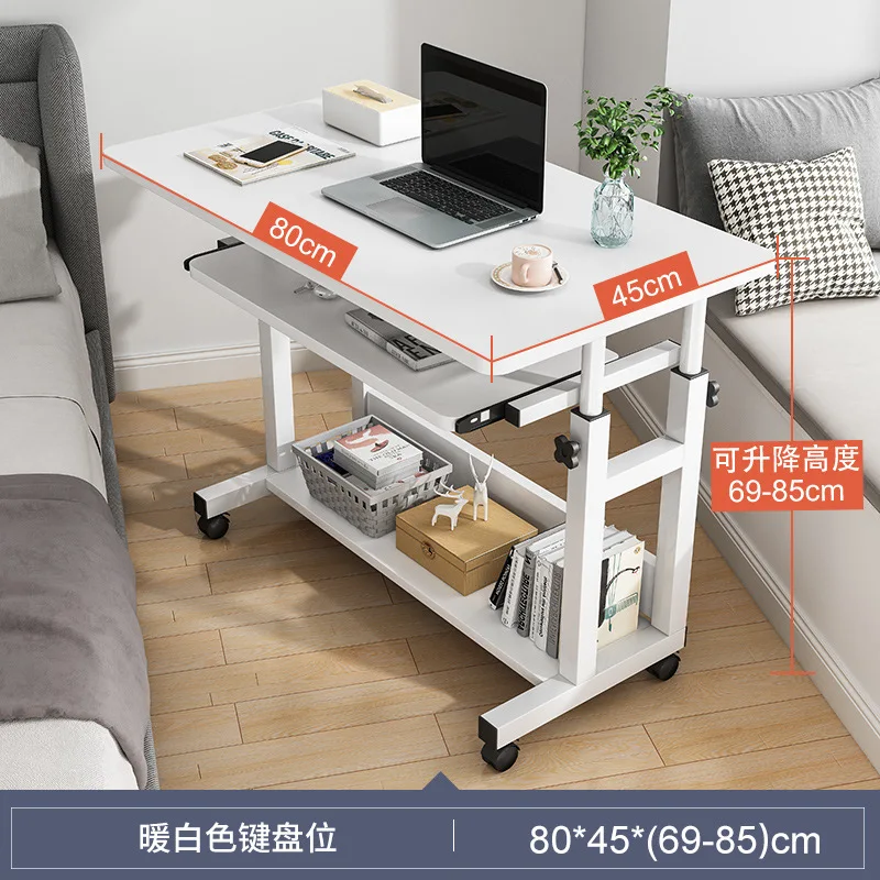 Liftable Bedside Study Computer Desk with Lower Storage Rack with Wheels Removable Table 80*50cm
