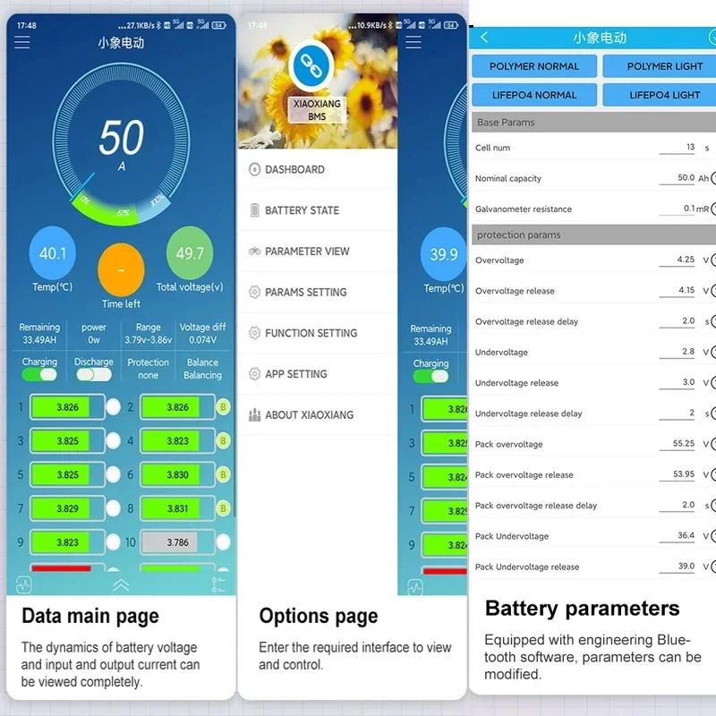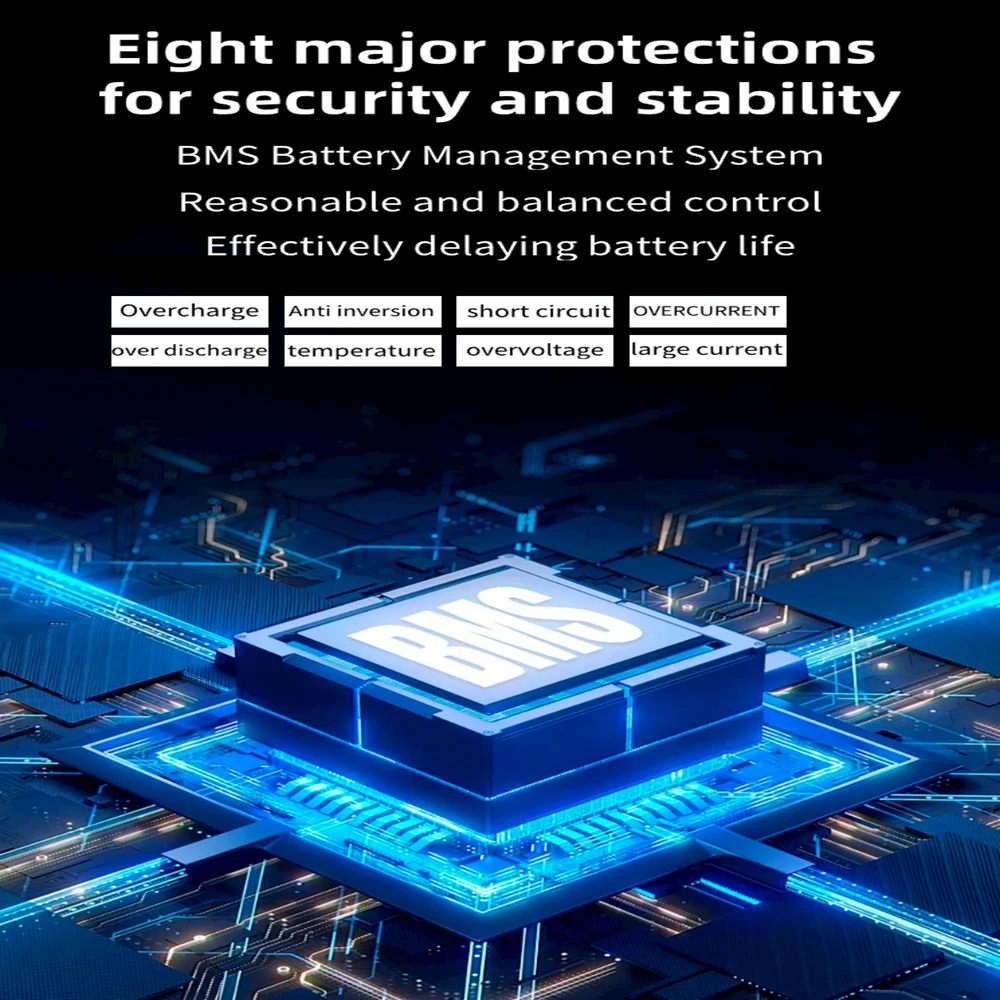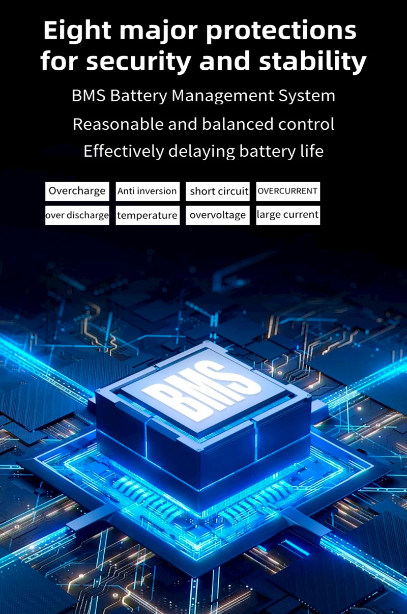 - BMS functions: over-current, over-discharge, over-charge, short-circuit,