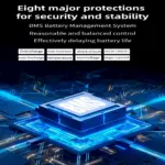 No. Spécification d’article 1 Tension de coupure de charge DC 58.4V 2 Tension nominale 48V 3 Capacité nominale 100Ah 4 Énergie 4.8kWh 5 Courant de charge Charge standard: 0.2C Environ 6 heures Charge rapide: 0.5C Environ 2.5 heures 6 Méthode de charge standard 0.2 CC (courant constant) charge à 58.4V, puis CV (tension constante 58.4V) charge jusqu’à ce que le courant de charge diminue à moins de 0,02C 7 Courant de charge max. 100A 8 Courant de décharge max. 100A/150A/200A/300A 9 Max. Courant d’impulsion 200A/300A/400A/600A(3S) 10 Tension de coupure de décharge 40V 11 cycles 6000 fois 12 Température de fonctionnement Charge: 0 ° C-45 °C Décharge: -10 ° C-60 °C 13 Température de stockage-10 °C à + 45 °C 14 Poids de la batterie env. 26 kg 15 Dimension de la batterie 521*238*218mm 16 Tension de sortie de la batterie 58.4V-40V 17 BMS intégré Oui BMS (système de gestion de la batterie) BMS est PCM de plus haut niveau, qui est le système de contrôle et de gestion de sécurité pour surveiller l’état de la batterie afin de rendre la batterie mieux fonctionner et allonger la durée de vie de la batterie objectivement. BMS est principalement utilisé dans les batteries li-ion/li-polymère/lifepo4 haute capacité. Le BMS est une intégration avancée de la gestion, de la protection, de la communication, de l’auto-diagnostic et de l’équilibrage cellulaire. 1. Protection contre les surcharges Protection 2. Overdischarge 3. Protection contre les surintensités 4. Protection contre la surchauffe (NTC) 5. Protection contre les courts-circuits 6. Détection de température 7. Surveillance et équilibrage des cellules 8. Interface de communication 9. Auto-diagnostiquez 10. jauge de puissance |