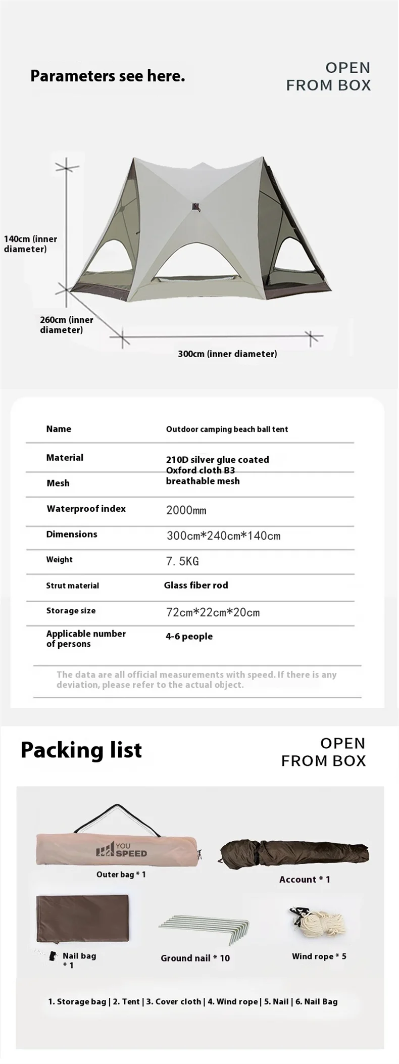 Lohascamping One-touch beach tent Awning tent Outdoor Automatic Quick-opening Tent Rainproof Hexagonal Camping Pop Up Tent Big