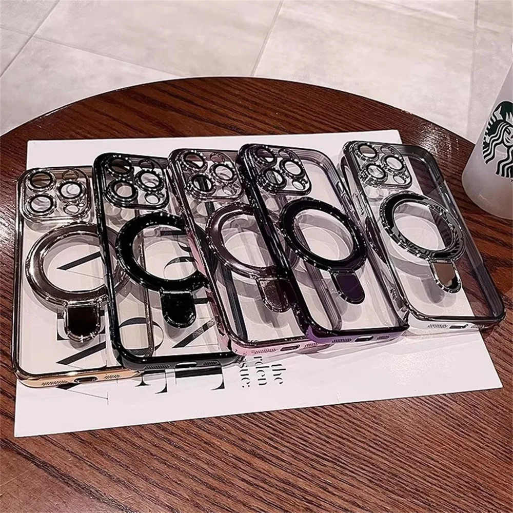Luxury For Magsafe Bracket Case For iPhone 16 17 15 14 13 12 11 Pro Max 16 15 Plus 17 Air Magnetic Ring Stand Holder Clear Acrylic Cover