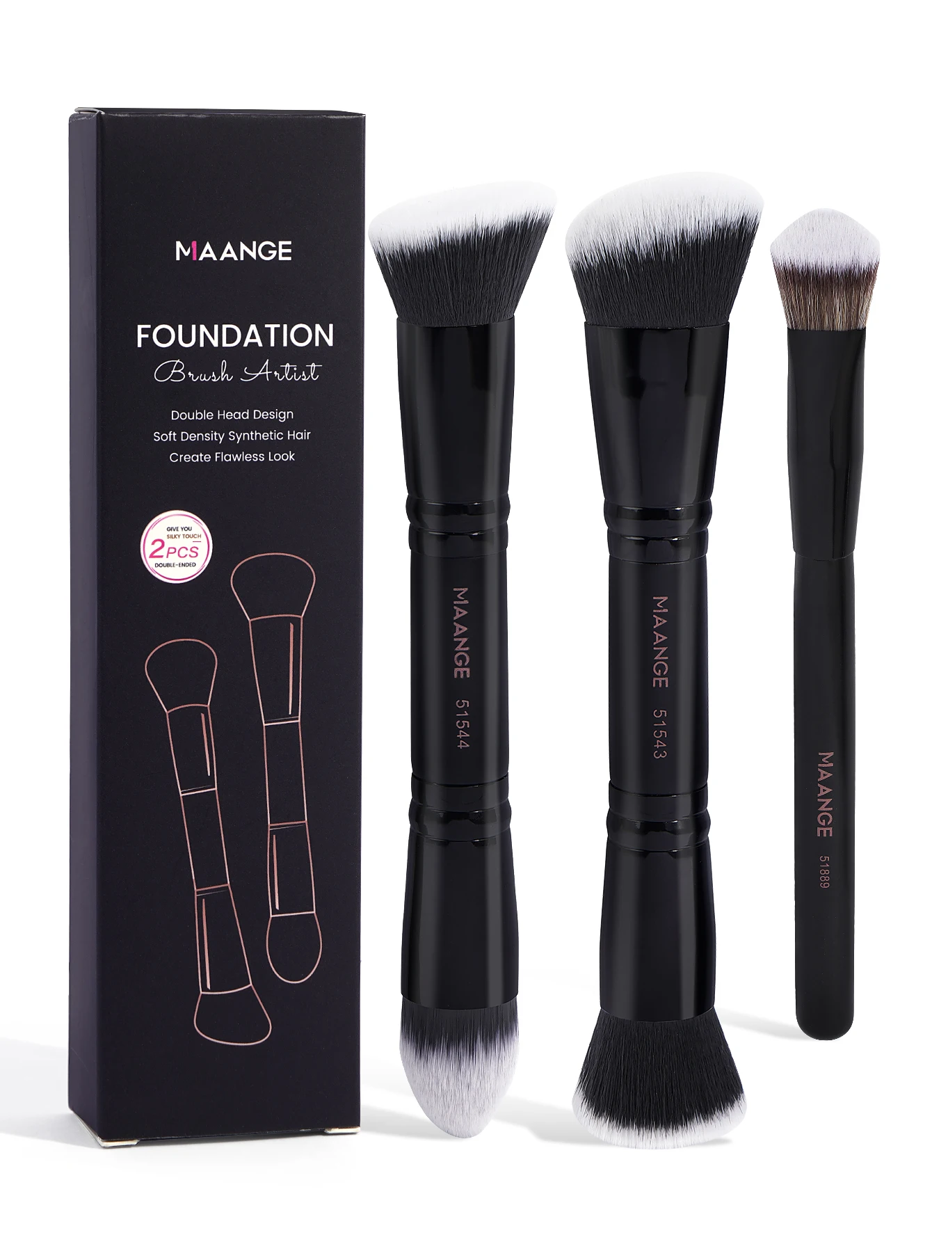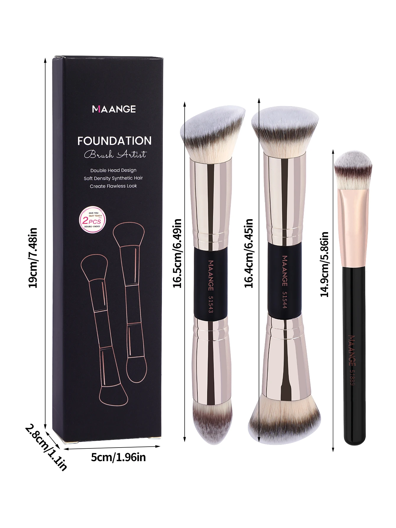 MAANGE 3PCS Double Ended Makeup Brush Foundation Concealer Brush for Blending Liquid Powder Soft Fluffy Bristles Beauty Tools