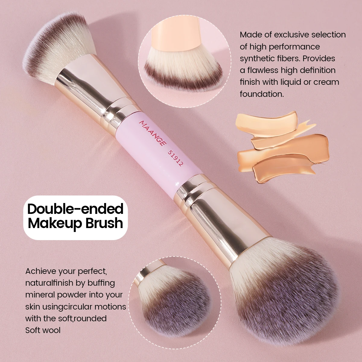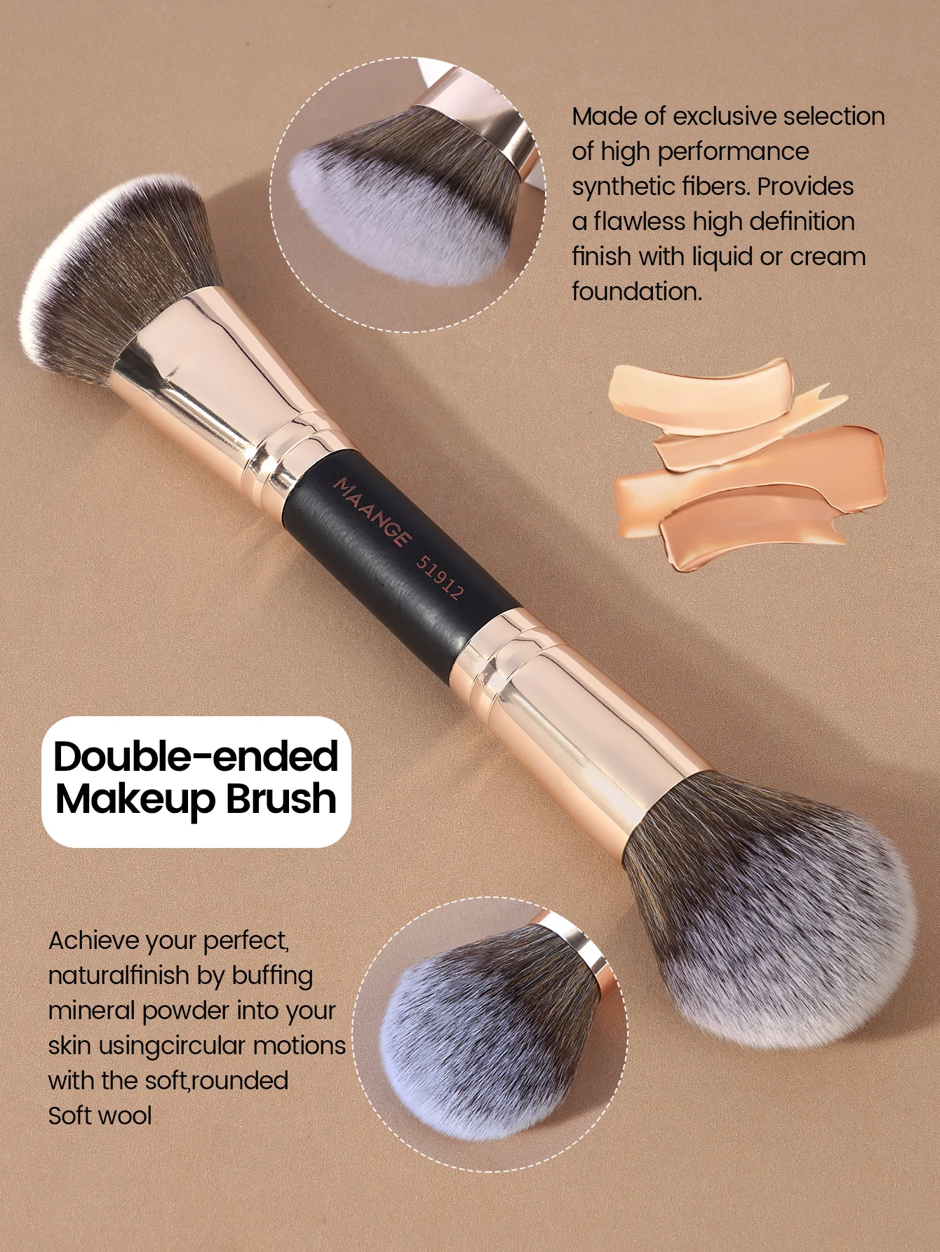 MAANGE Dual-end Makeup Brush for Foundation Powder Blush Contour Soft Dense Bristles Strong Powder Grabbing for Gifts