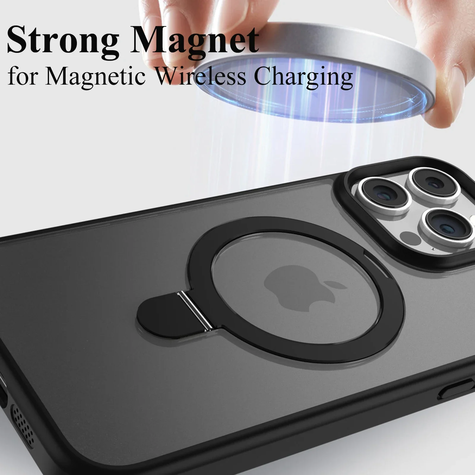 Magnetic Mobile Phone Case with Ring Stand for iPhone 16 15 14 Pro Max Plus 13 12 11 Cases Translucent Cover with Protector