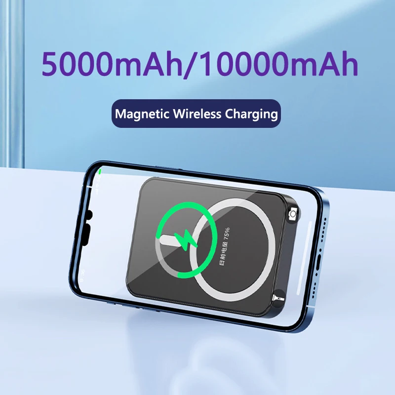Magnetic Power Bank 10000mAh Wireless Fast Charger External Battery Pack for iPhone 15 Samsung Xiaomi Huawei Powerbank With Stand