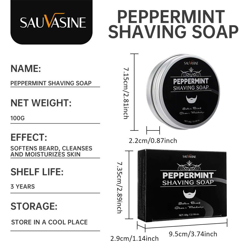 3. Refreshing Shaving Sensation: This men's shaving soap has the unique freshness of peppermint. Allow each shave to become a refreshing and pleasant routine, reducing skin discomfort while shaving.