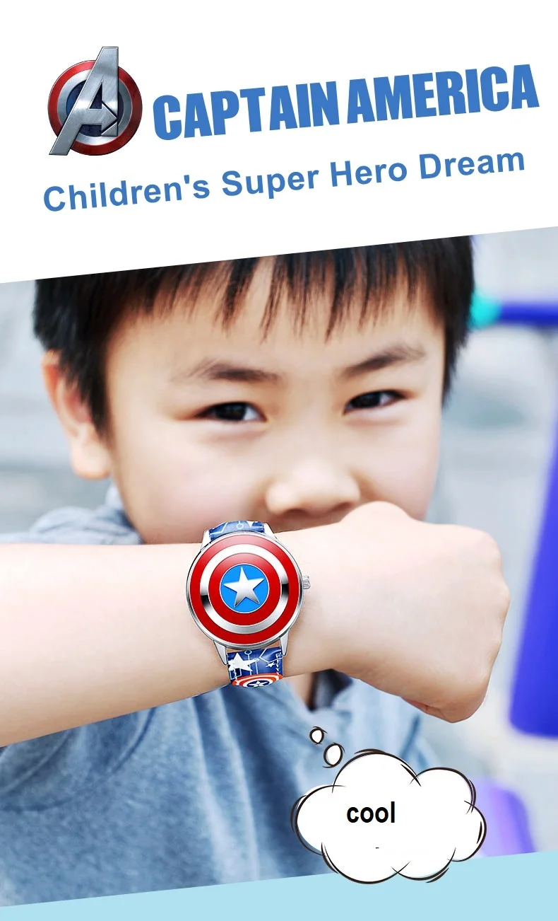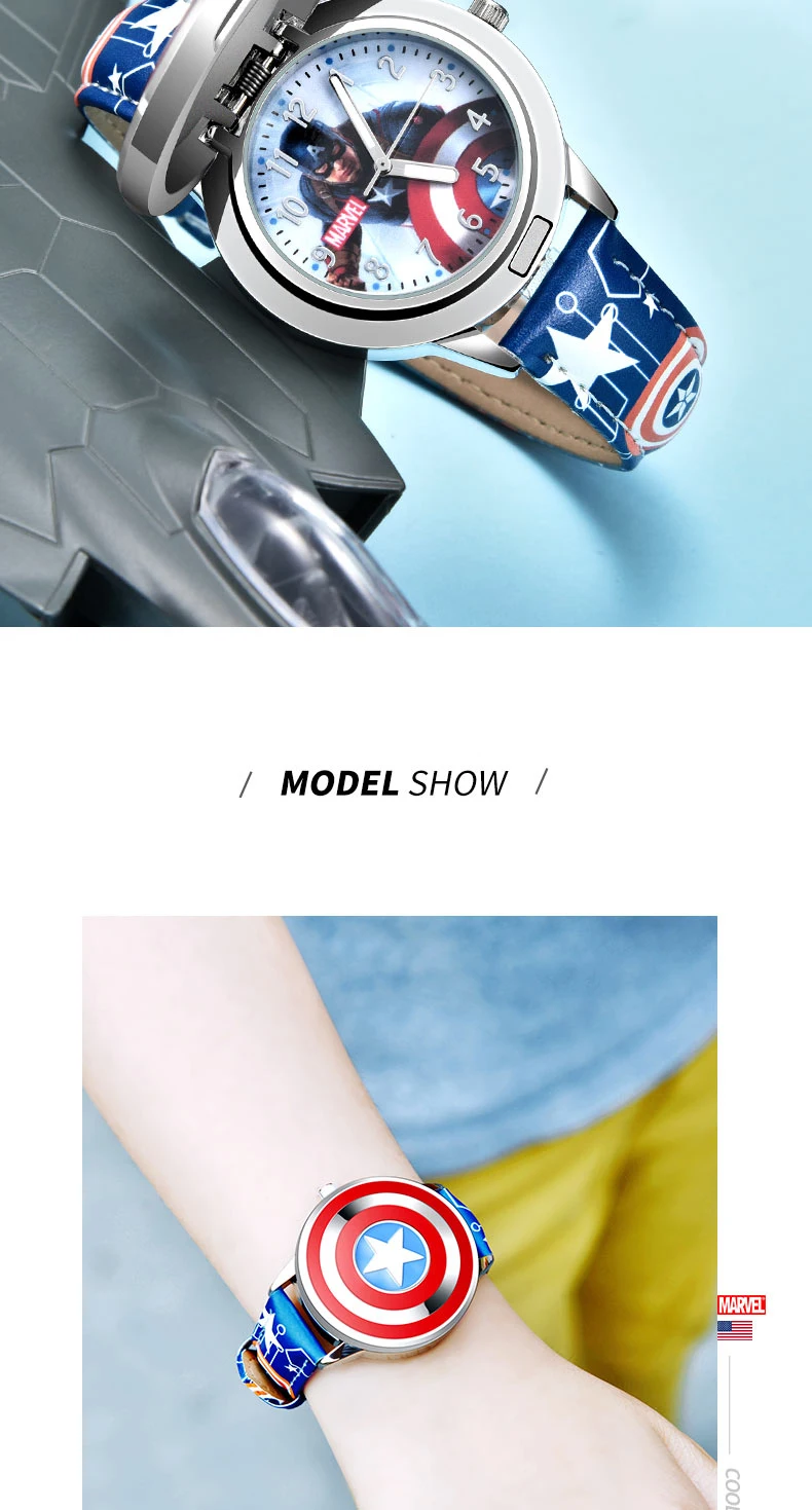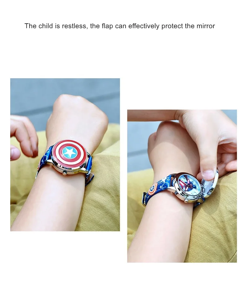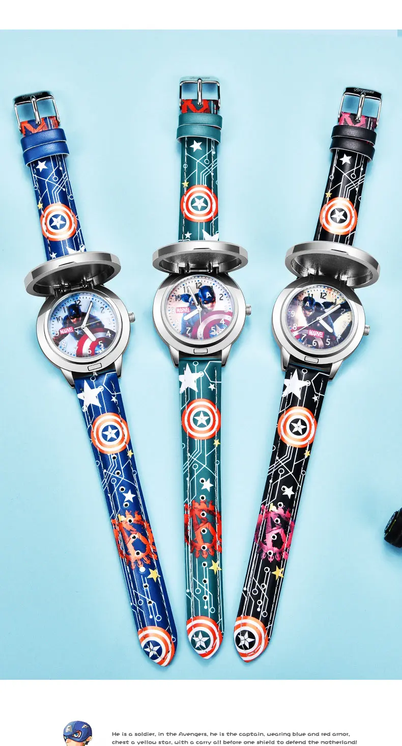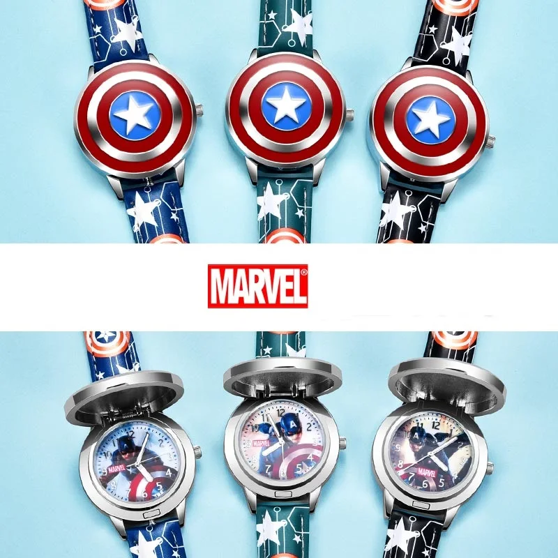 Marvel For Children Watch Avengers Captain America Iron Man Spider Cartoon Flip Quartz Wristwatch Boy Youth Student Teenage Kid