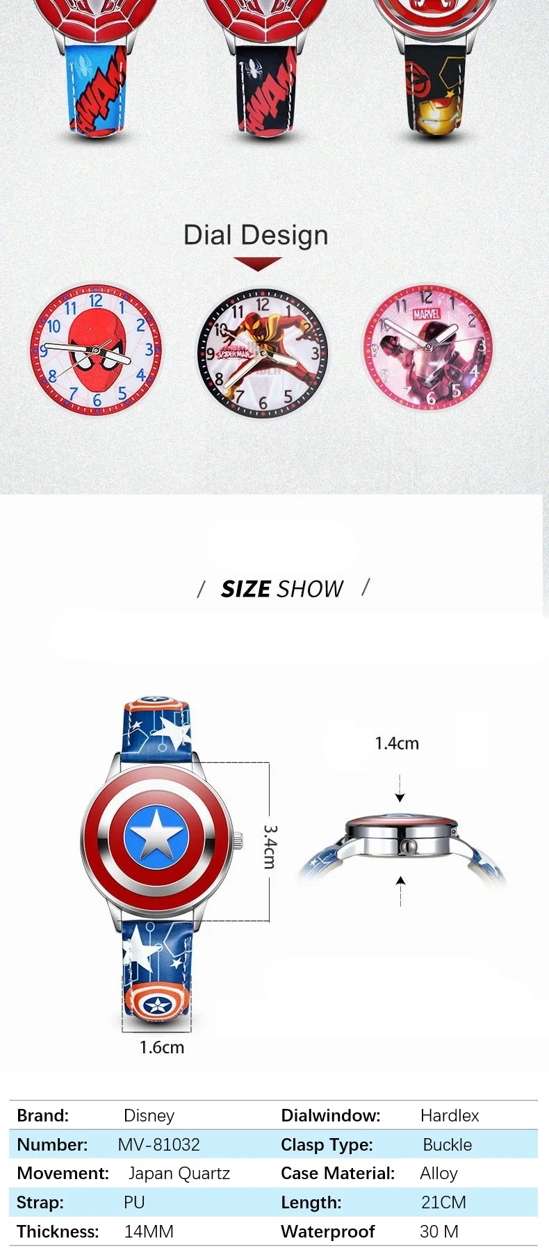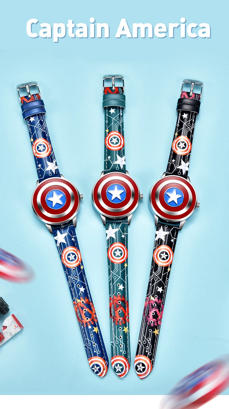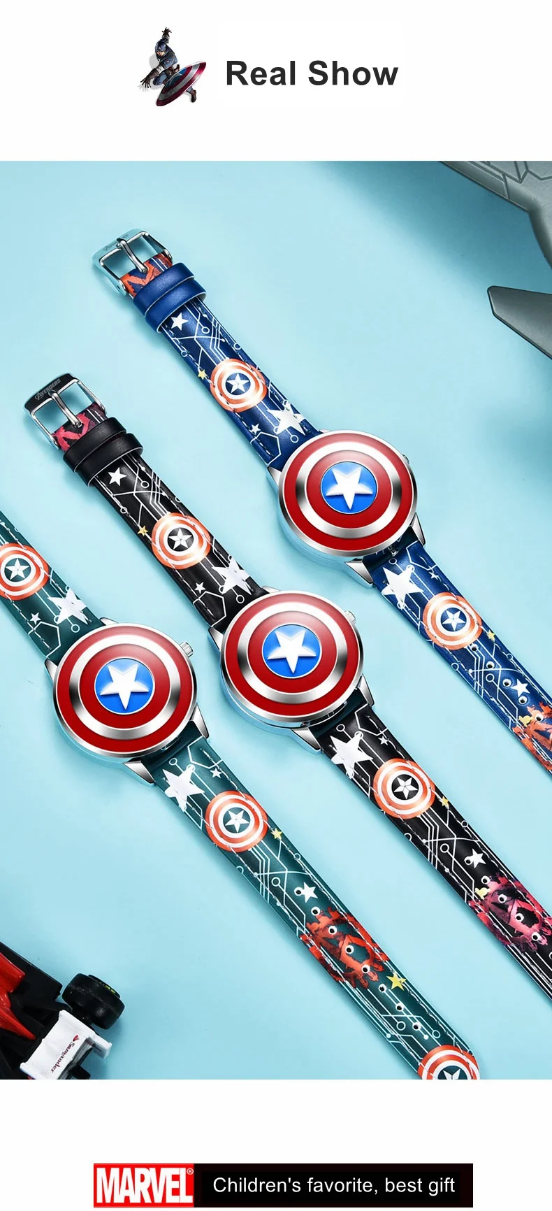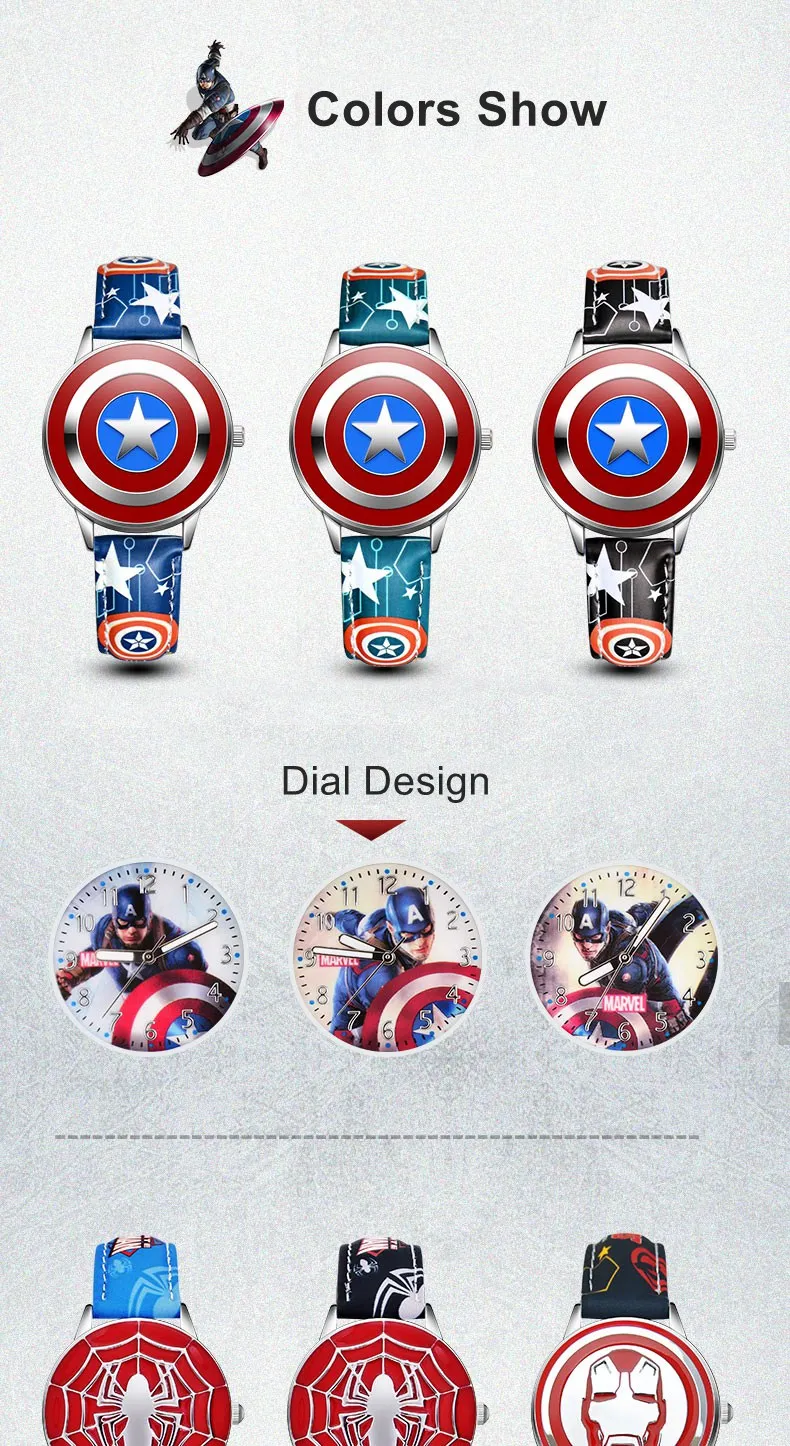 Marvel For Children Watch Avengers Captain America Iron Man Spider Cartoon Flip Quartz Wristwatch Boy Youth Student Teenage Kid