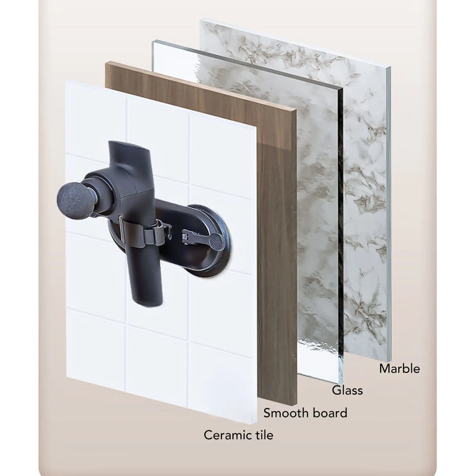 5. STRONG AND STABLE: The vacuum suction cup of the massage gun holder can be stably fixed to a wall, door or any smooth surface object, and will not fall off easily due to the weight of the massage gun