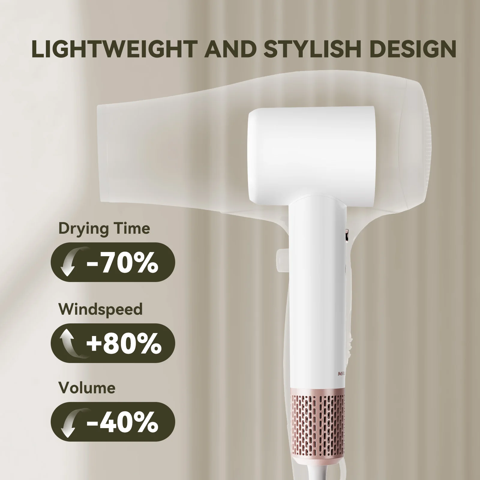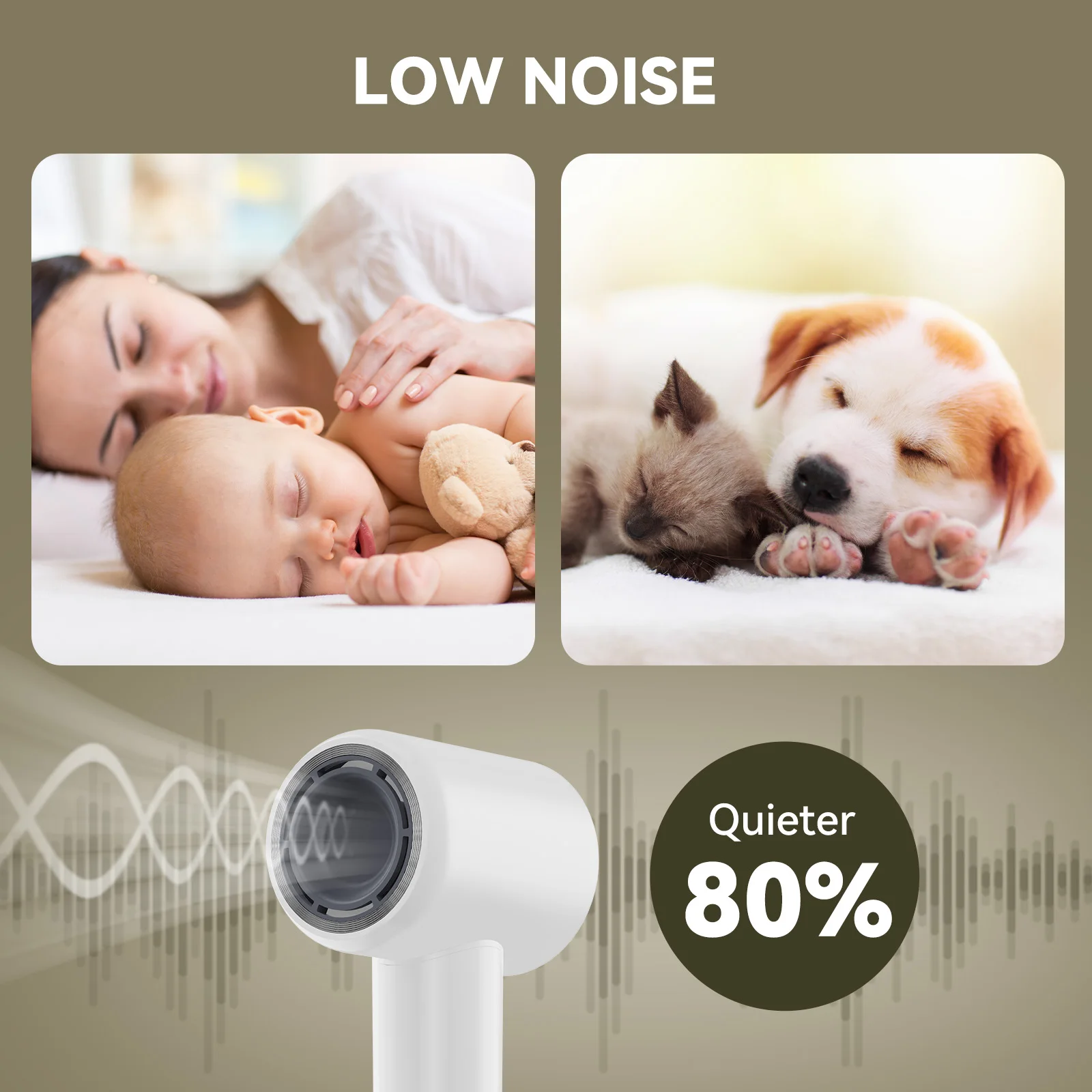【Easy to carry & Super Low Noise】This hair dryer weighs only 1260g, compact and portable. The noise of the ionic hair dryer is only 59dB when working.Innovative air duct,achieve less air resistance.