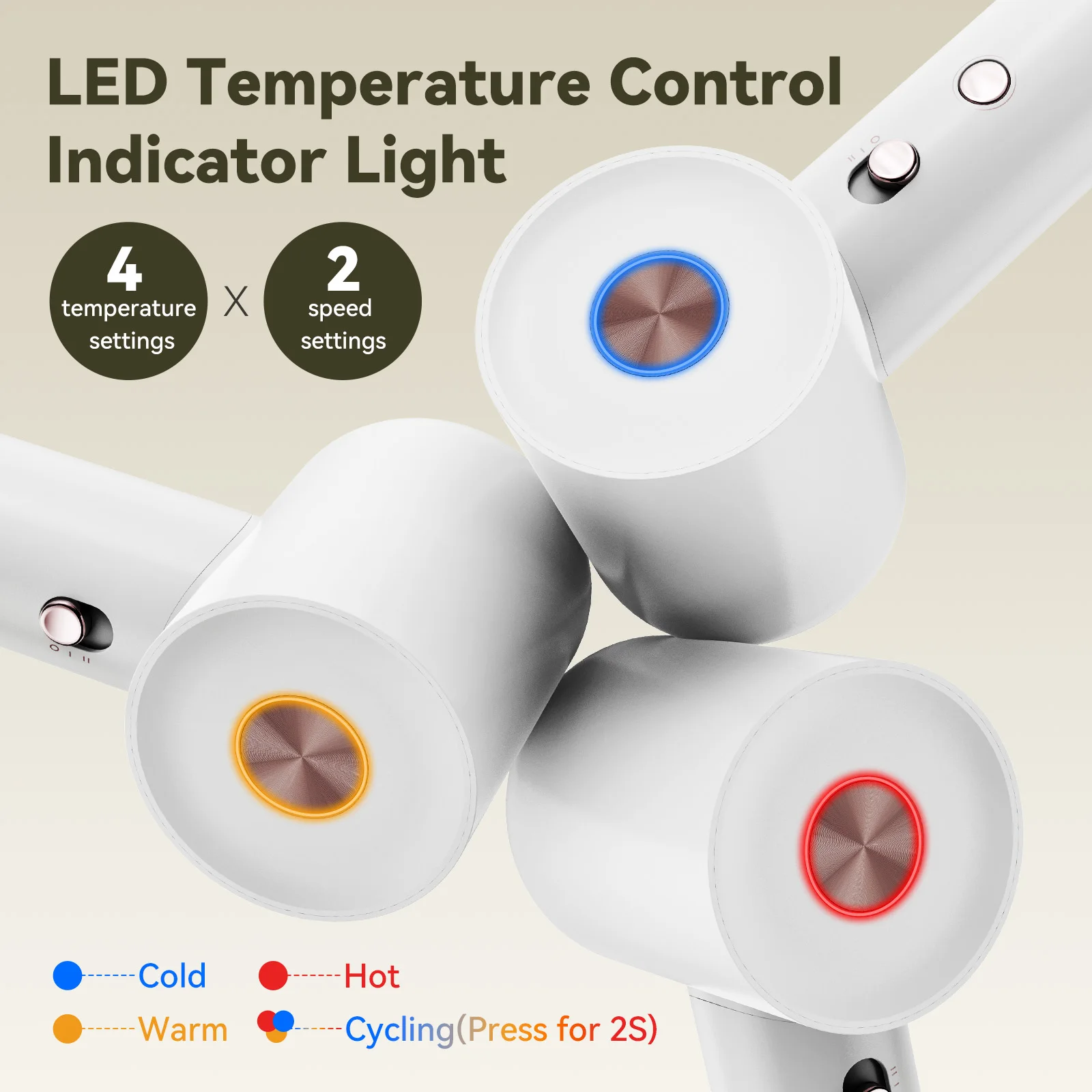 【High-Speed & Fast Drying No Heat Damage】 Fentgo hair dryer is equipped with 110,000RPM high speed brushless motor, provides a strong wind speed reaches 21.2m/s, which can quickly dry your hair in 2-8 minutes.