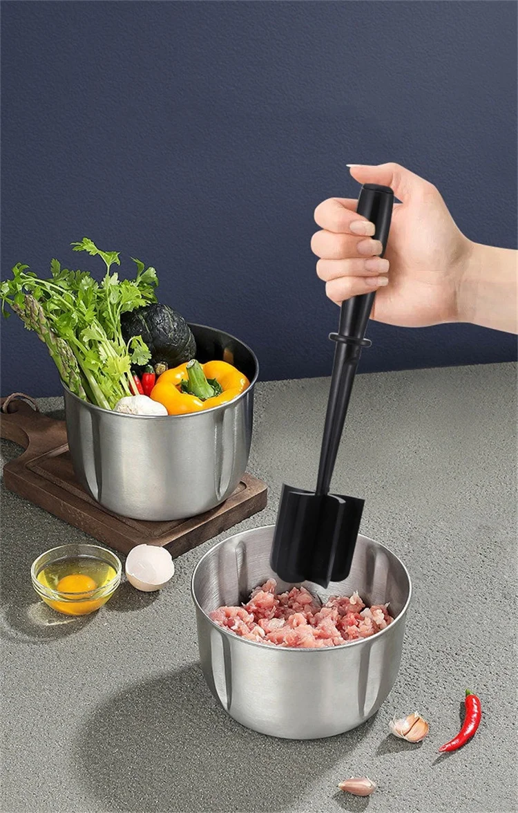 Meat Food Crusher Multifunctional Manual Mincer Meat Grinder Cooking Potato Beef Non-Stick Masher Kitchen Mixing Rod Tools