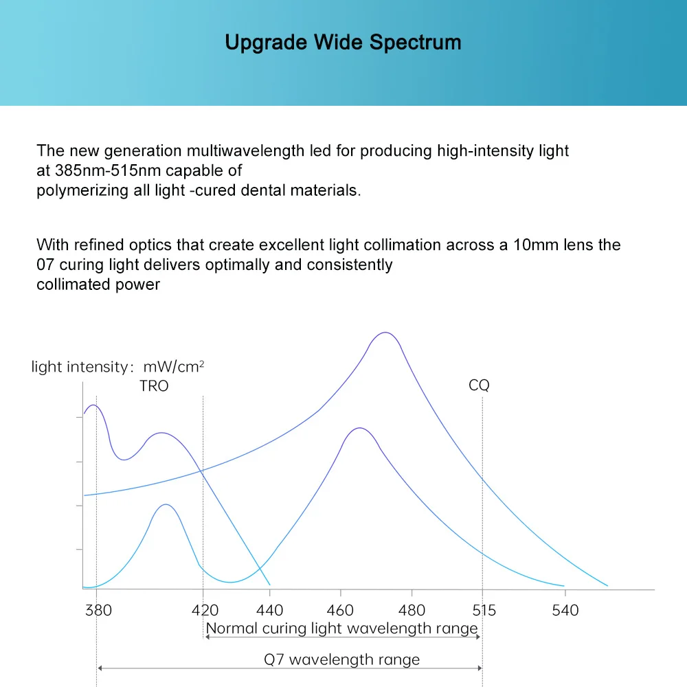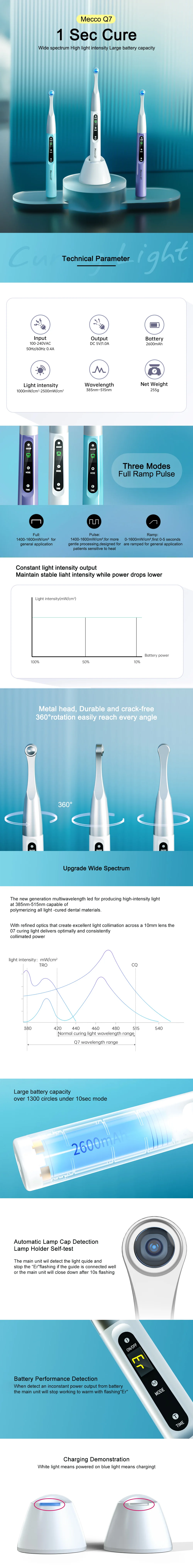MECCO One Second Cure Q7 Dental Curing Light Wide Spectrum LED Light Cure Oral Photopolymerization Lamp Teeth Whitening Tool
