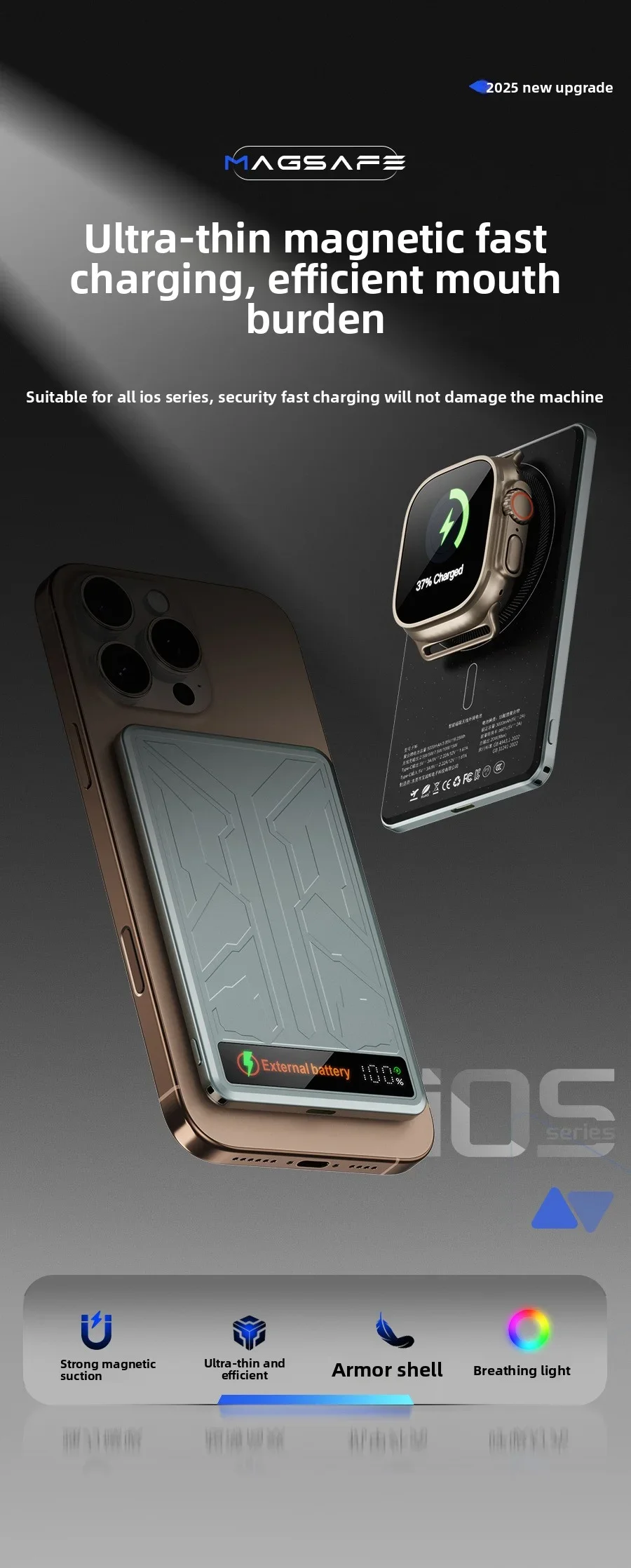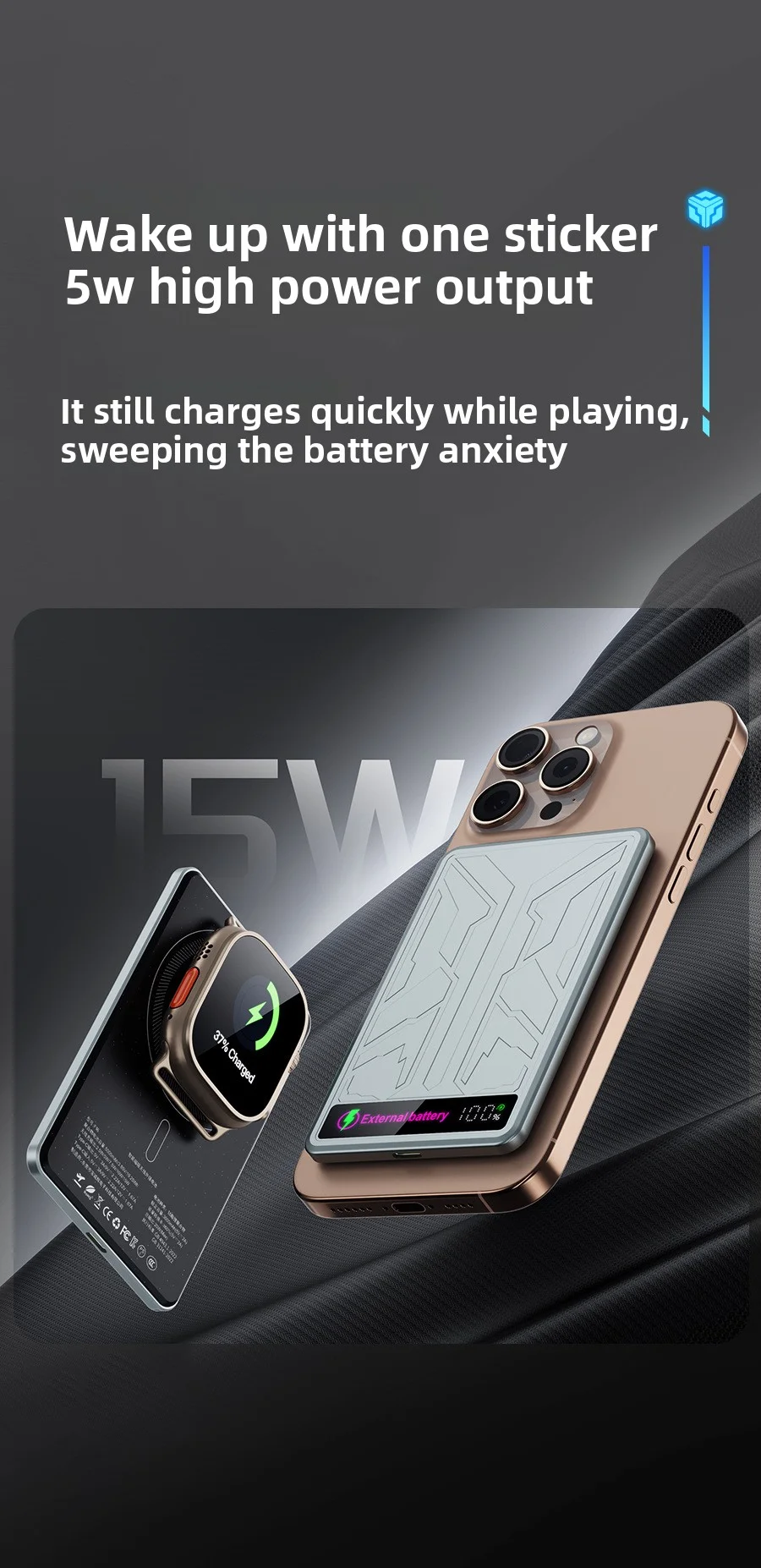 10000mAh Ultra-Slim Magnetic Magnetic Wireless Power Bank for Apple Watch ultra 10 9 8 7 6 5 4 3 2 5000mAh Portable Mini External Spare Battery for iPhone 16 15 14 13 12 Samsung Xiaomi powerbank Product parameter