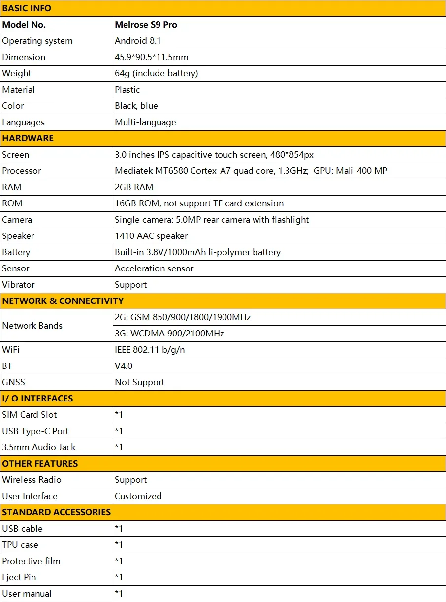 Melrose S9 Pro Mini Phones 3.0” 2GB+16GB Ultra Slim Quad CoreMobile Phone 5MP 1000mAh 3G Compact Mini Smartphone Android