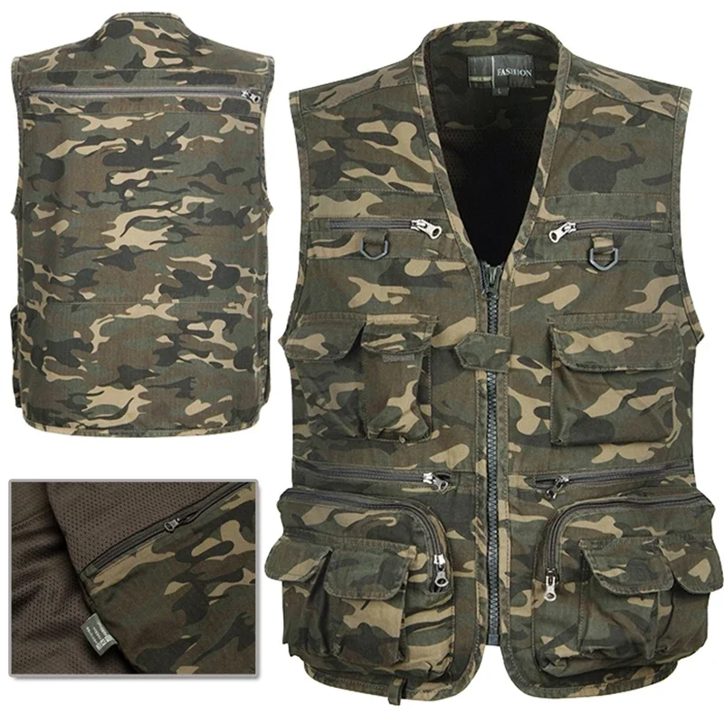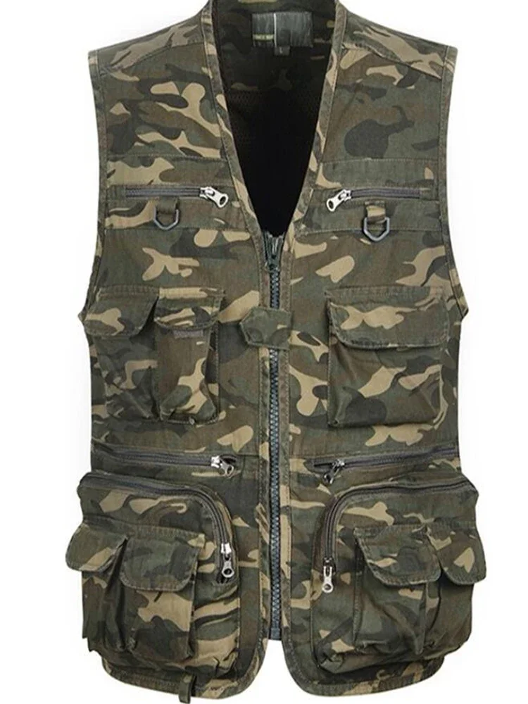 Men Camouflage Fishing Hunting Vest Cargo Outdoor Game Outwear Waistcoat Multi-Pocket Photography Recreational Vest