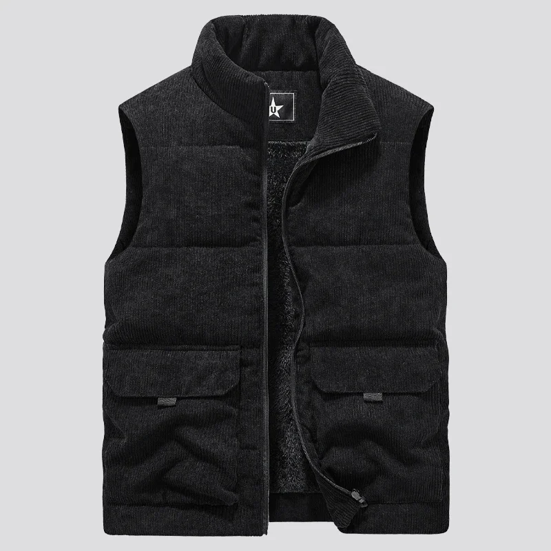 Men Stand Collar Army Thicken Waistcoats Clothing Mens Sleeveless Corduroy Vest Winter Male Classic Fleece Warm Vests Coats