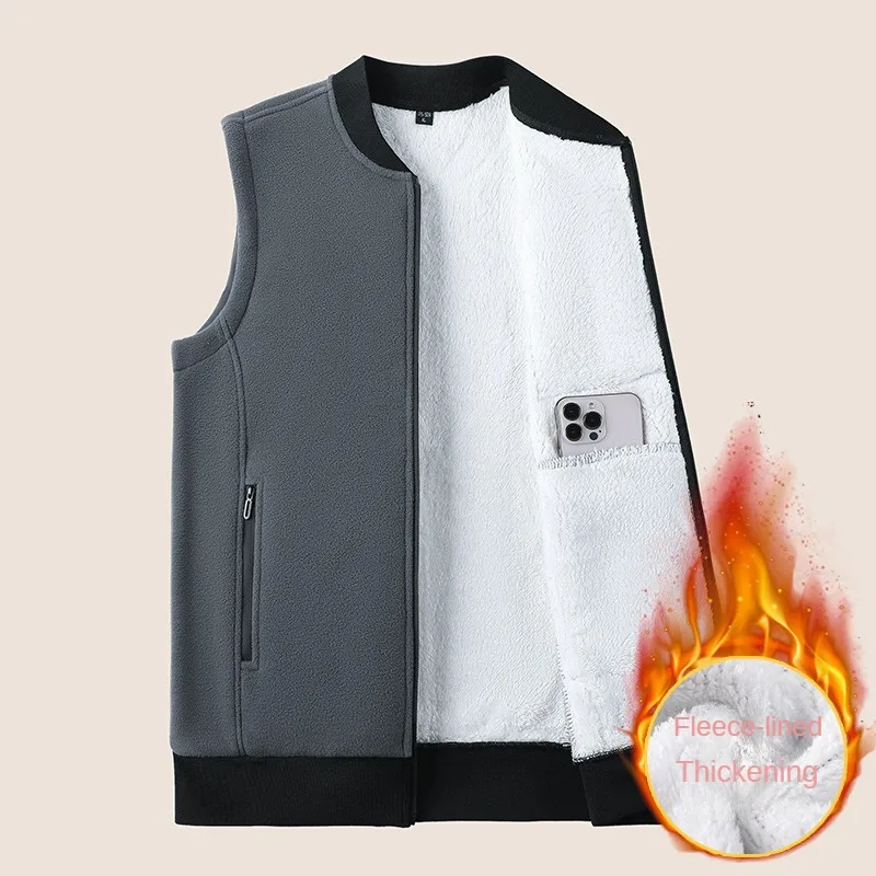 Men Winter Vest Sleeveless Stand Collar Solid Color Fleece Thick Keep Warm Plus Size Neck Protection Winter Waistcoat for Daily