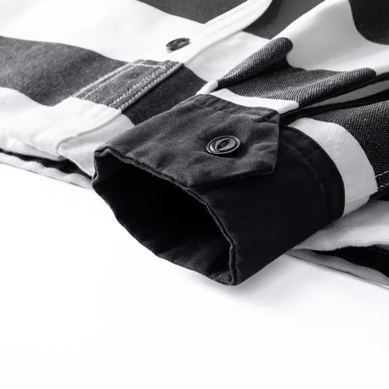 Be the first to review “Men’s 16OZ Canvas Jacket Vintage Black White Striped Motorcycle Shirt Cotton Thick Lapel Prisoner Jacket Male Casual Outerwear”