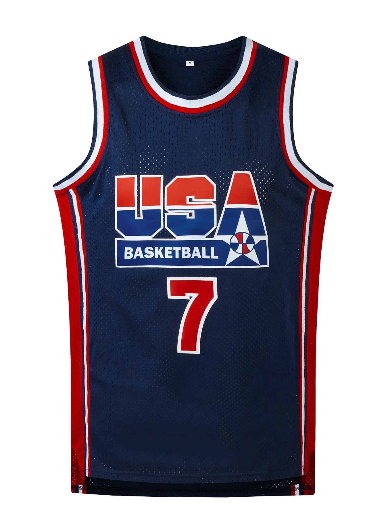Men’s Basketball Jersey Breathable Round Neck Sportswear Sleeveless Boys Training Uniform Team T-shirt New Design Tops USA#7