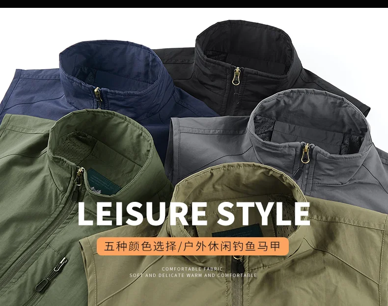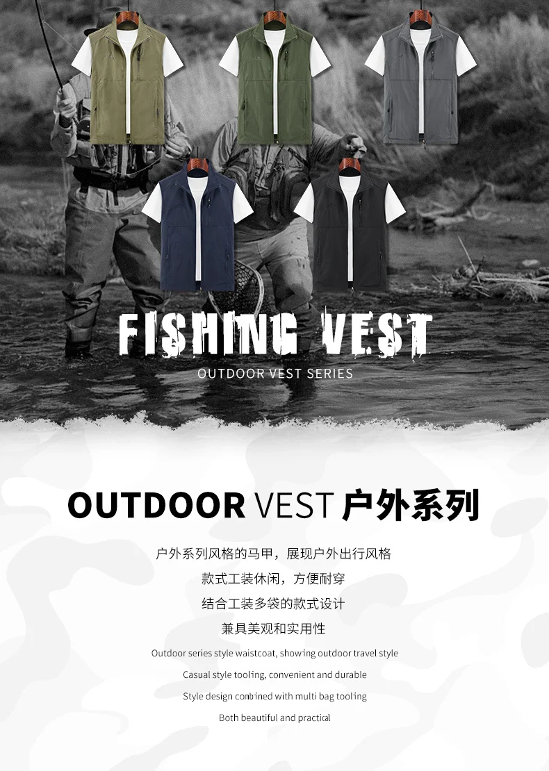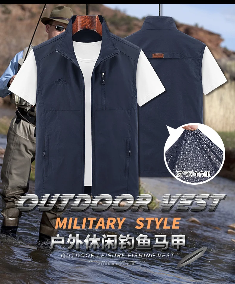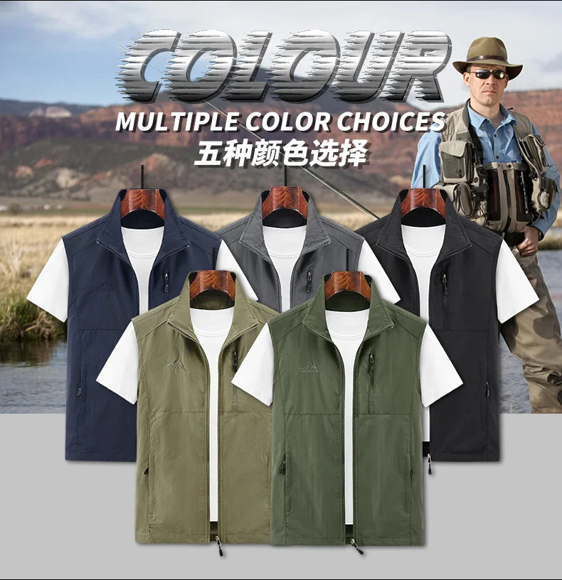 Mens Outdoor Vests Man Fish Vest Waterproof Breathable Waistcoat New Men Multi-pockets Cargo Vest Hiking Work Photography Vest