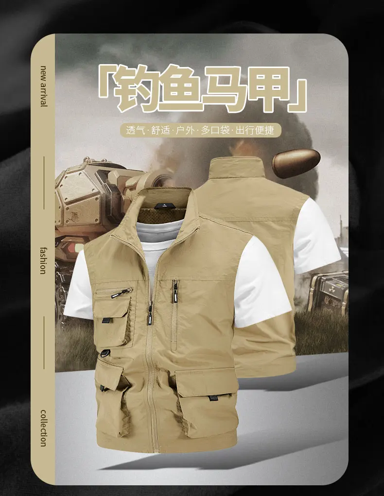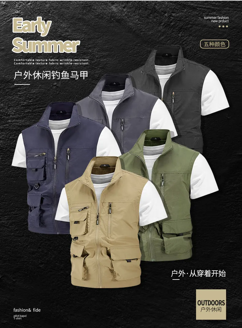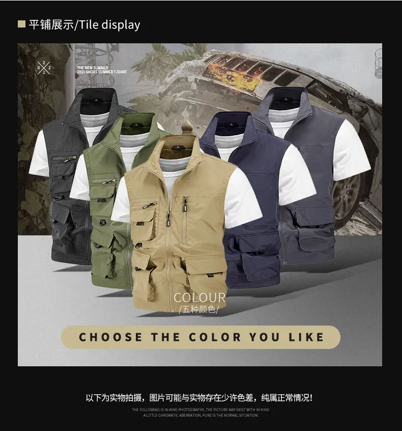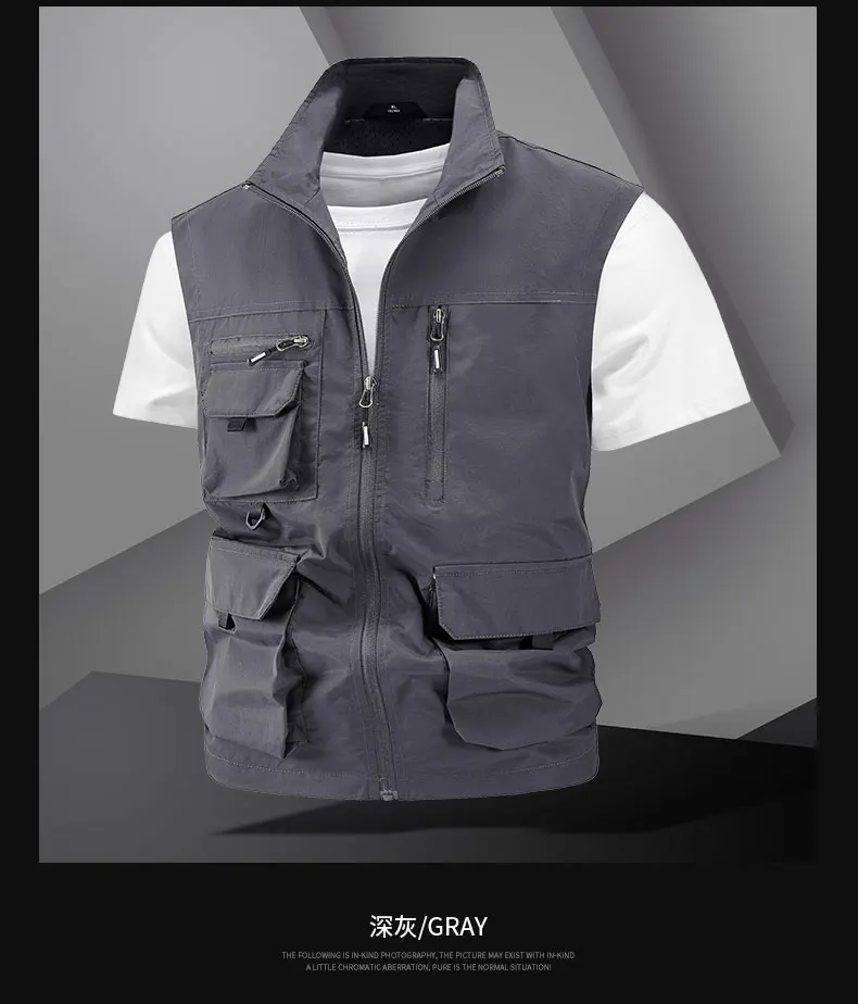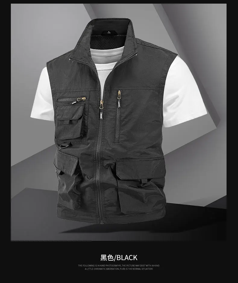 Men’s Work Vest Tactical Windbreaker Men Large Size Golf Sleeveless Jacket Hunting Camping Fishing Waterproof Coat Summer Vest