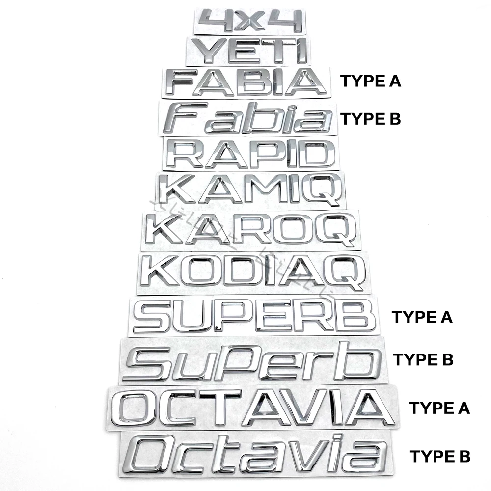 Metal Car Letters Rear Trunk Decals Emblem Badge Logo Sticker For Skoda Octavia Superb RAPID FABIA KAMIQ KAROQ KODIAQ YETI 4X4