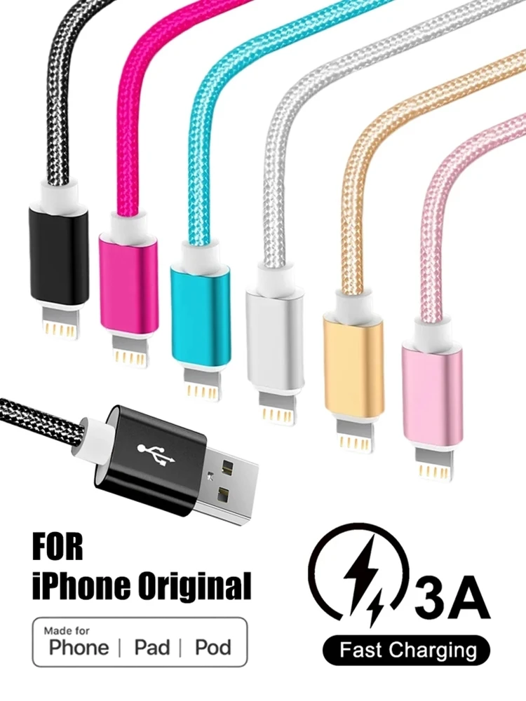 Metal Nylon Braided USB Charger Cable for iPhone 14 8 7 6S Plus X XR XS 11 12 13 Pro Max iPad 9 Fast Charging Data Cord 1m 2m 3m
