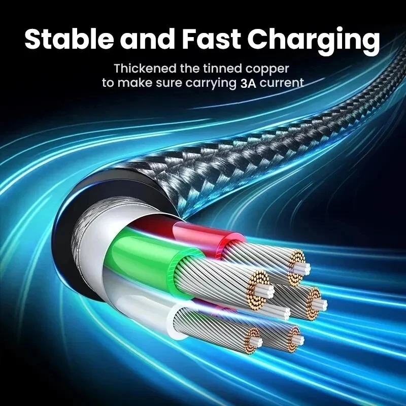 Metal Nylon Braided USB Charger Cable for iPhone 14 8 7 6S Plus X XR XS 11 12 13 Pro Max iPad 9 Fast Charging Data Cord 1m 2m 3m