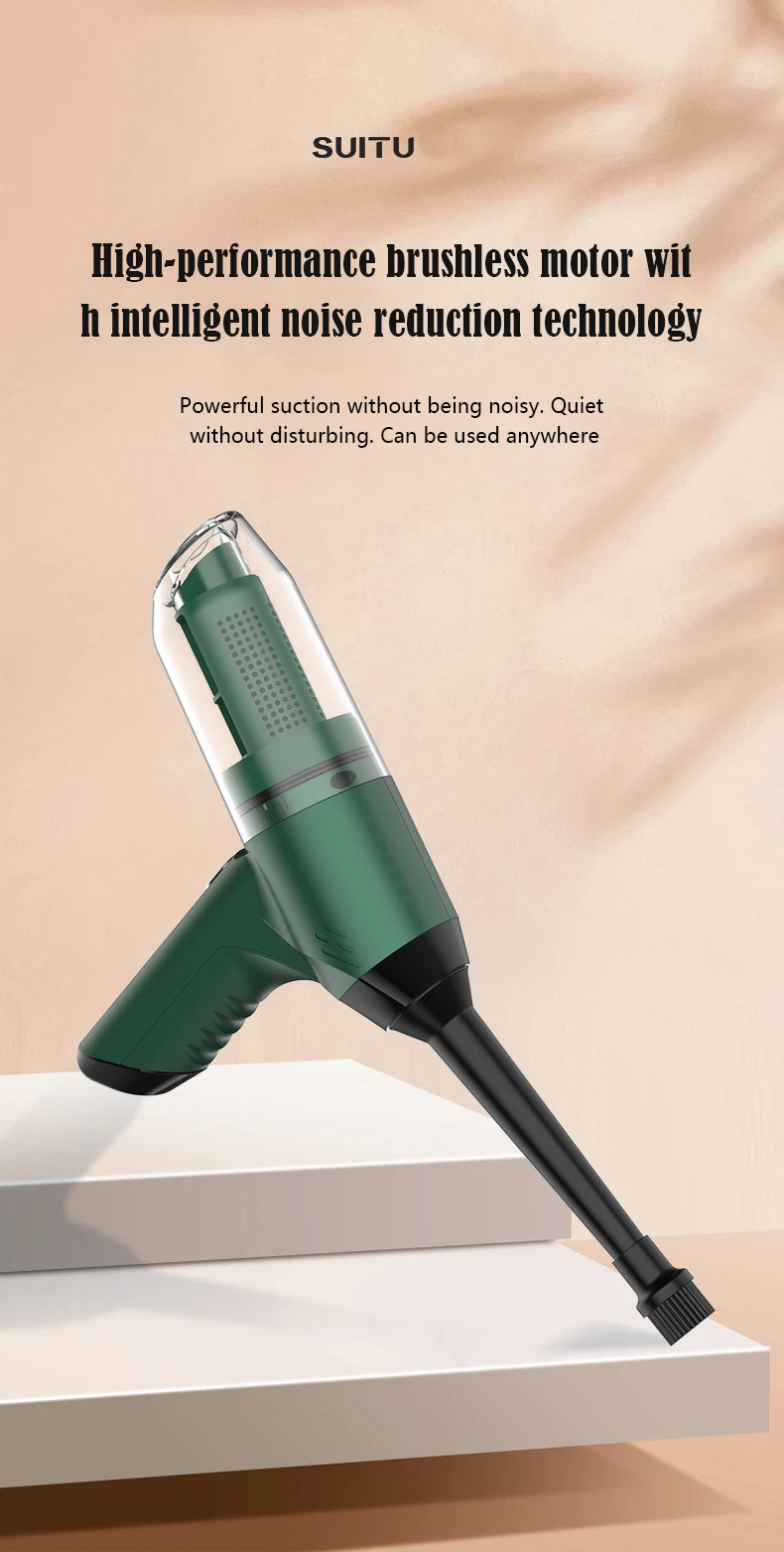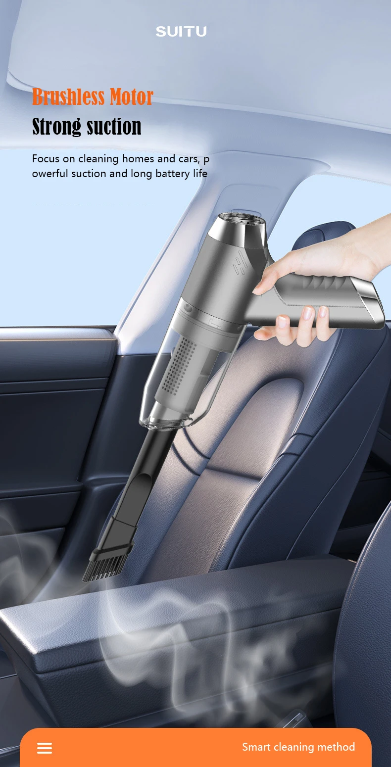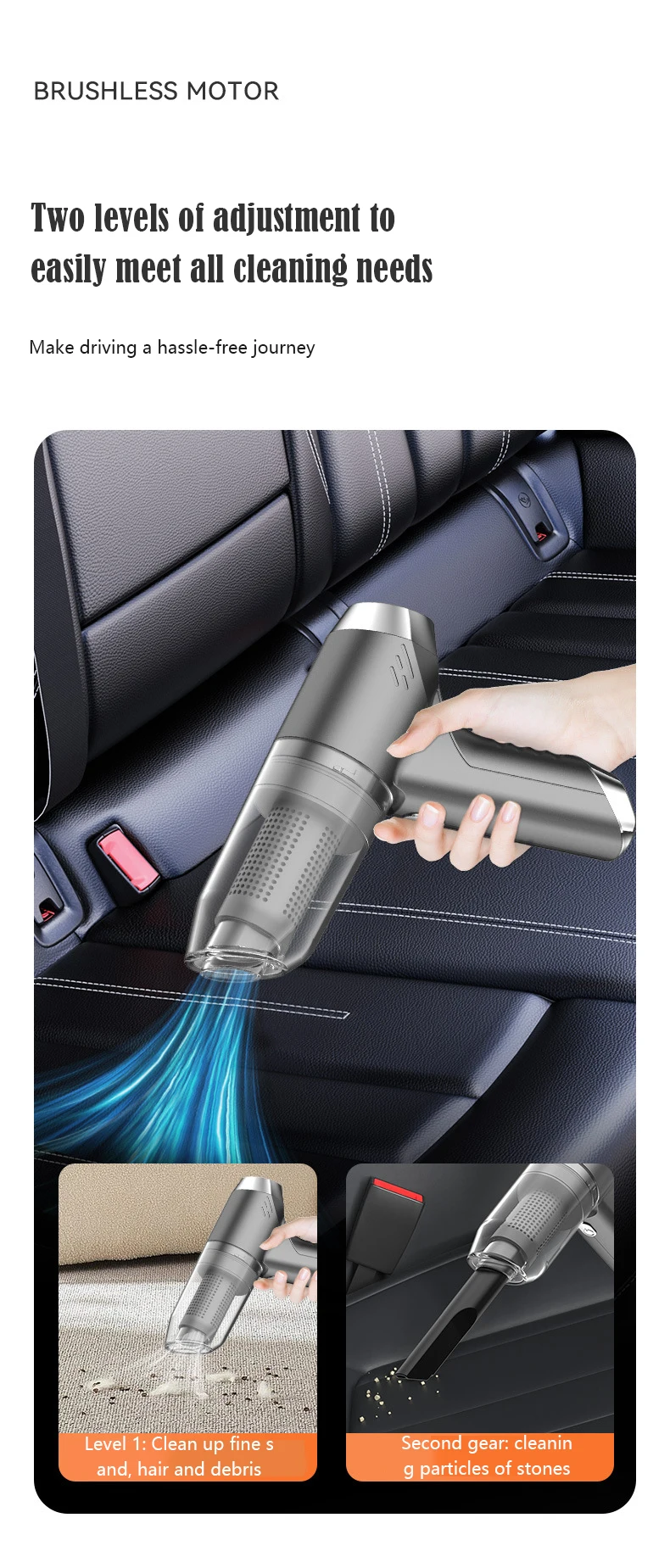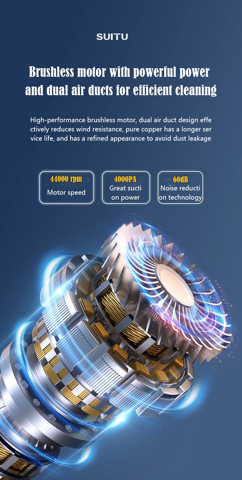 1. Focus on cleaning homes and cars, strong suction and long-lasting battery life, motor speed of 44,000 rpm, 4000PA high suction power, 60DB noise reduction technology