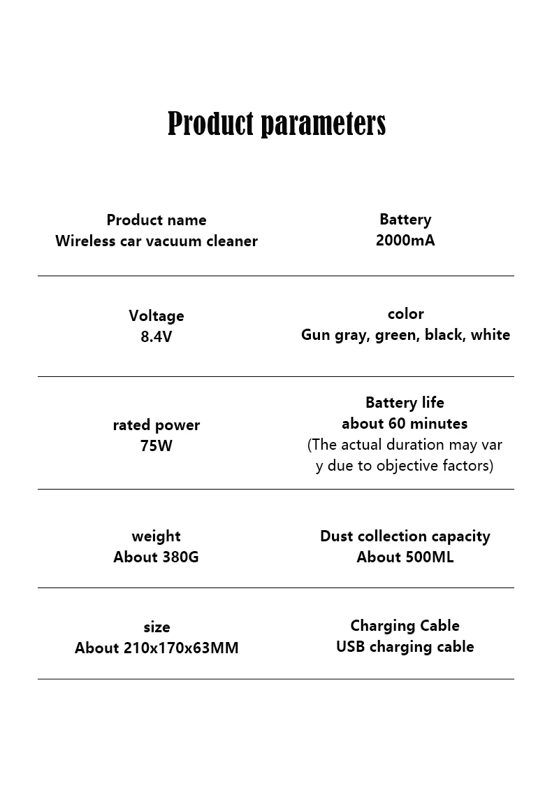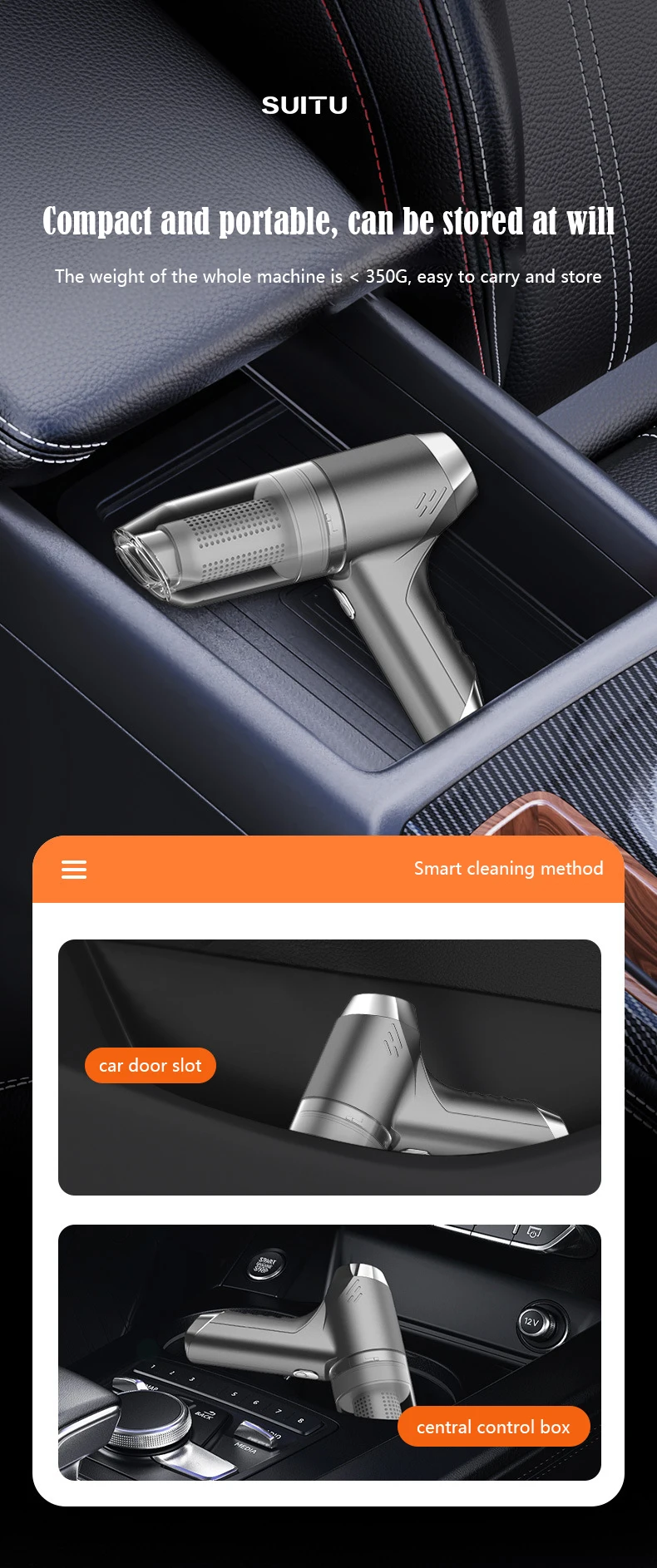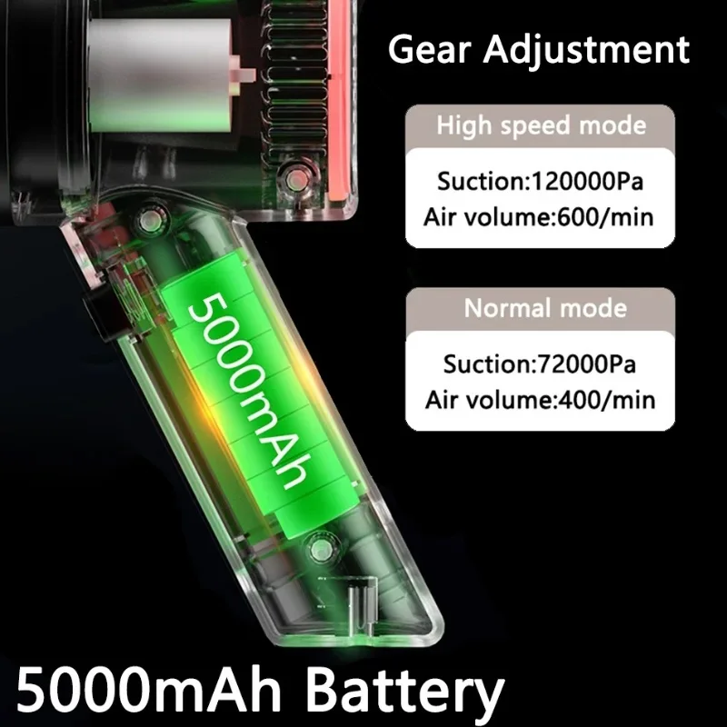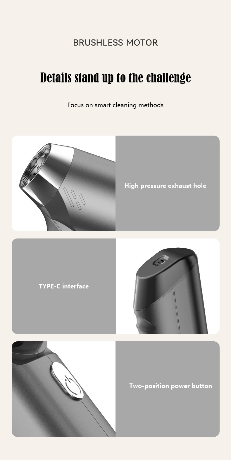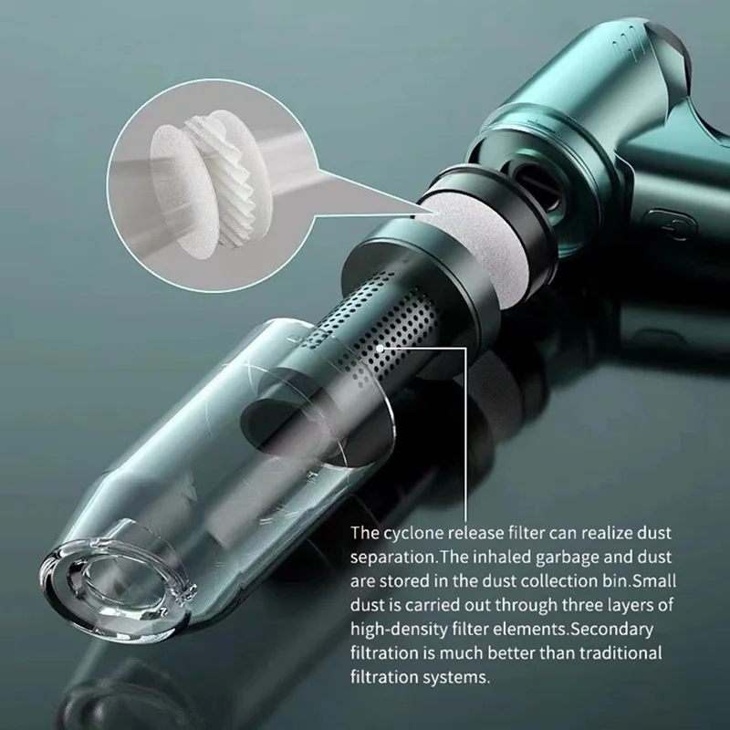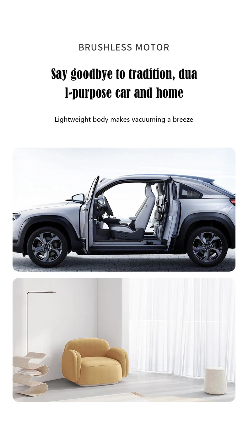 1. Focus on cleaning homes and cars, strong suction and long-lasting battery life, motor speed of 44,000 rpm, 4000PA high suction power, 60DB noise reduction technology