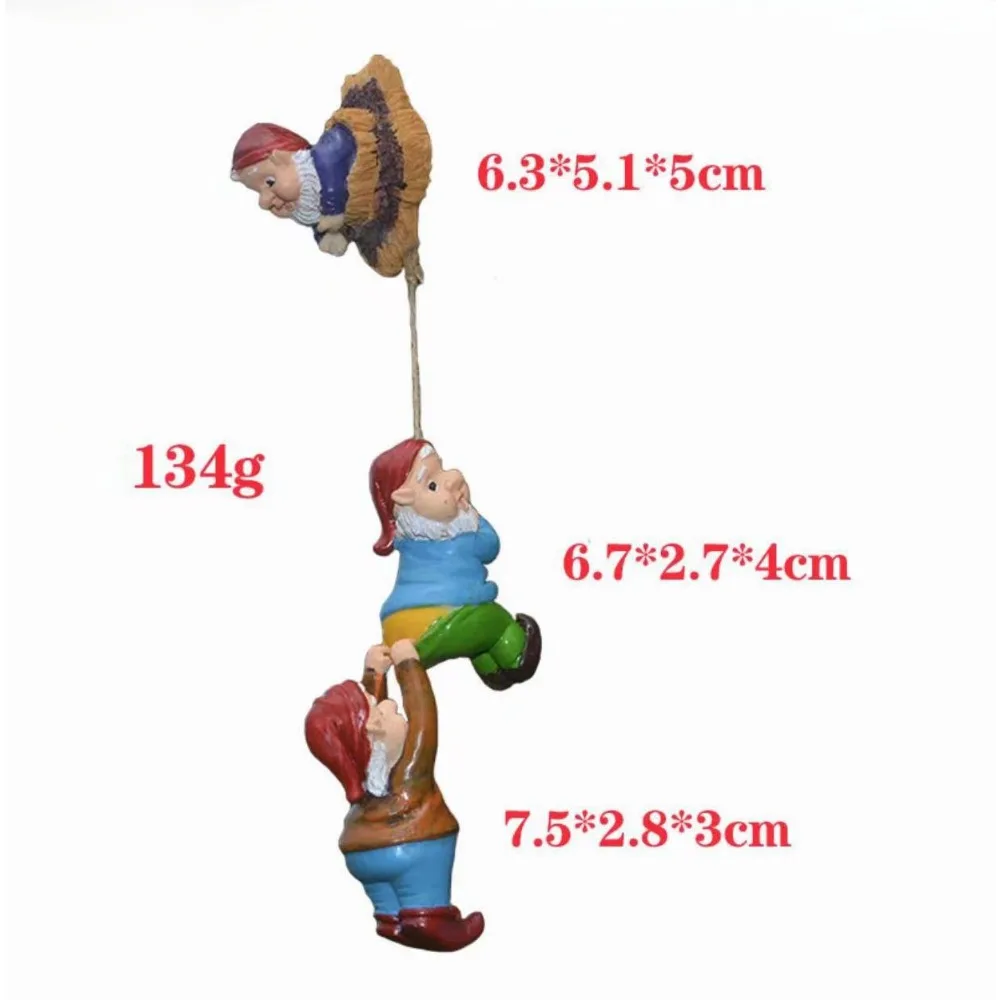 [Miniature Dwarf Statue] A pleasant surprise on a tree or fence. There are three exquisite and interesting gnome statues. One climbs along the tree with a rope, and the other holds the other end of the rope. Maybe he needs a ladder.